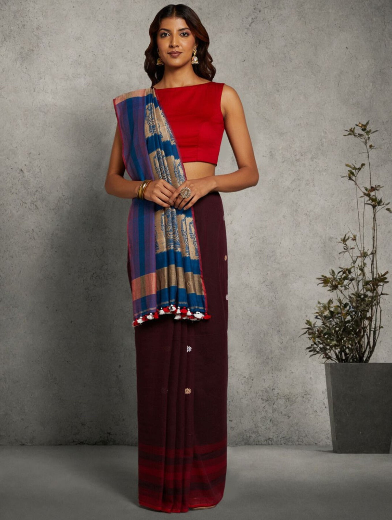 Whether you're attending a wedding, puja, or special celebration, this saree is designed to make a graceful statement while staying grounded in tradition