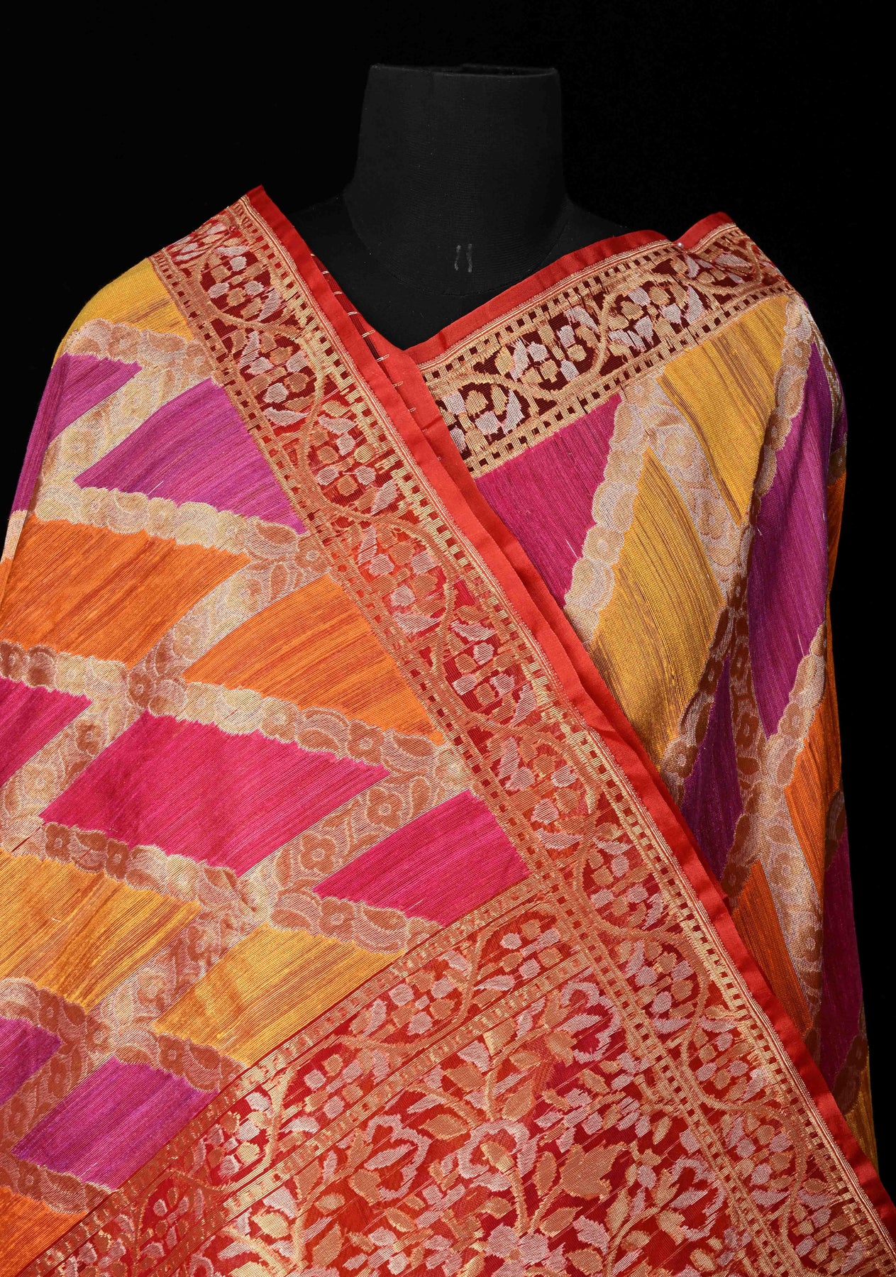 Lightweight and elegant, it provides a graceful drape, perfect for festive occasions, weddings, and cultural celebrations. The rich multicolor pattern adds charm, making it a timeless and versatile addition to any wardrobe