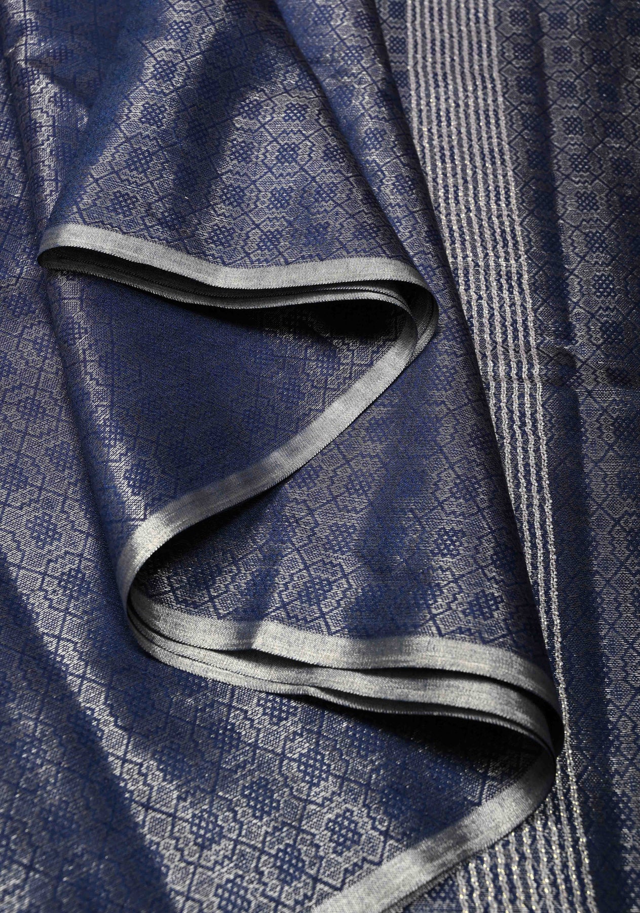 Exude timeless elegance with this Royal Blue Semi Tussar Saree, crafted from soft, lightweight fabric for a graceful drape. The deep royal blue body features intricate zari brocade work, adding richness and sophistication, while a minimal silver zari border provides subtle contrast and refinement. Perfect for weddings, festive celebrations, and special occasions, this saree combines traditional craftsmanship with contemporary style for a look that is both elegant and striking.