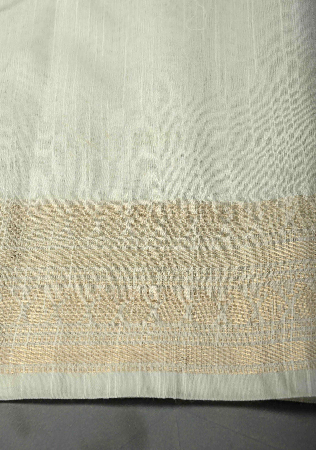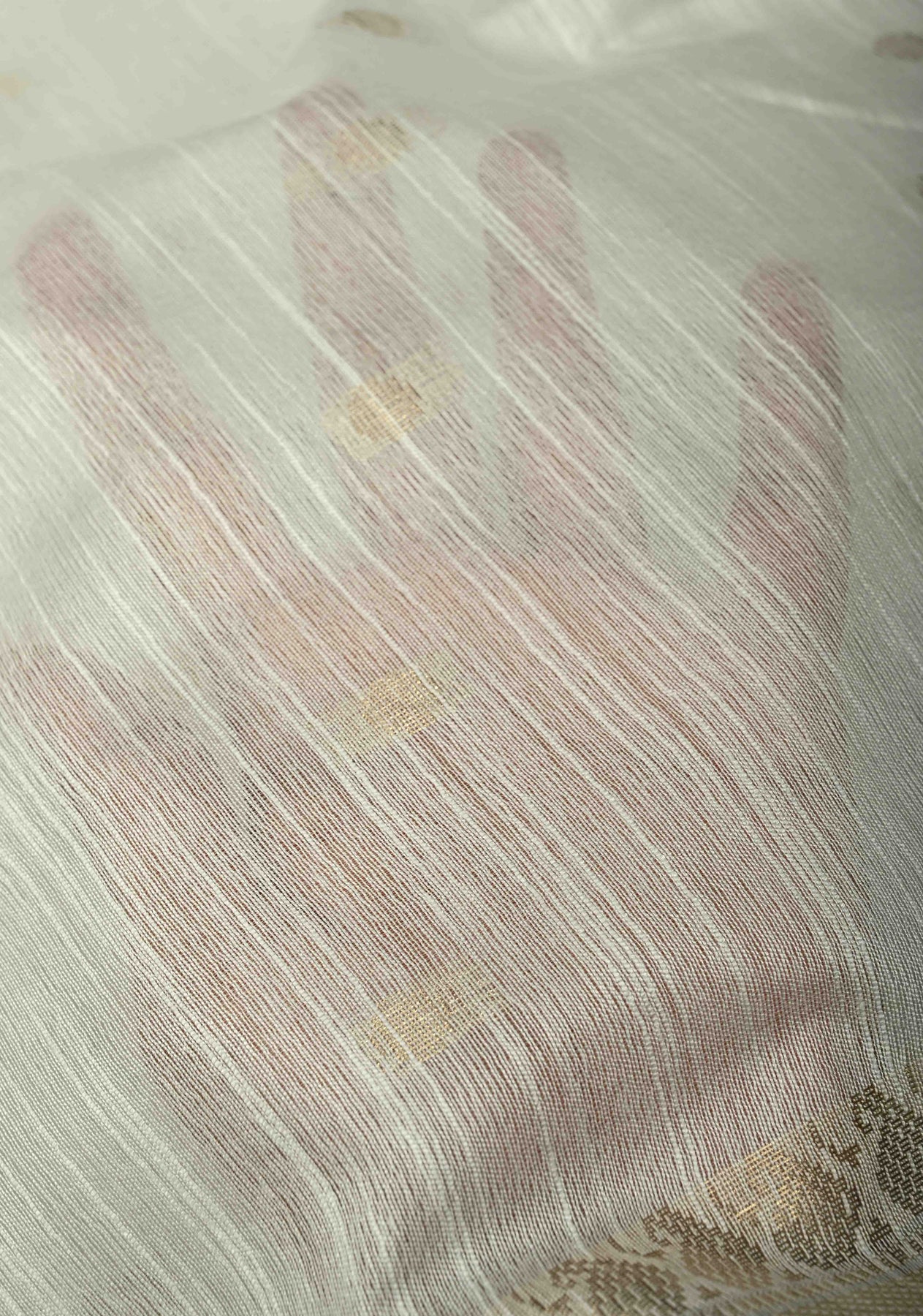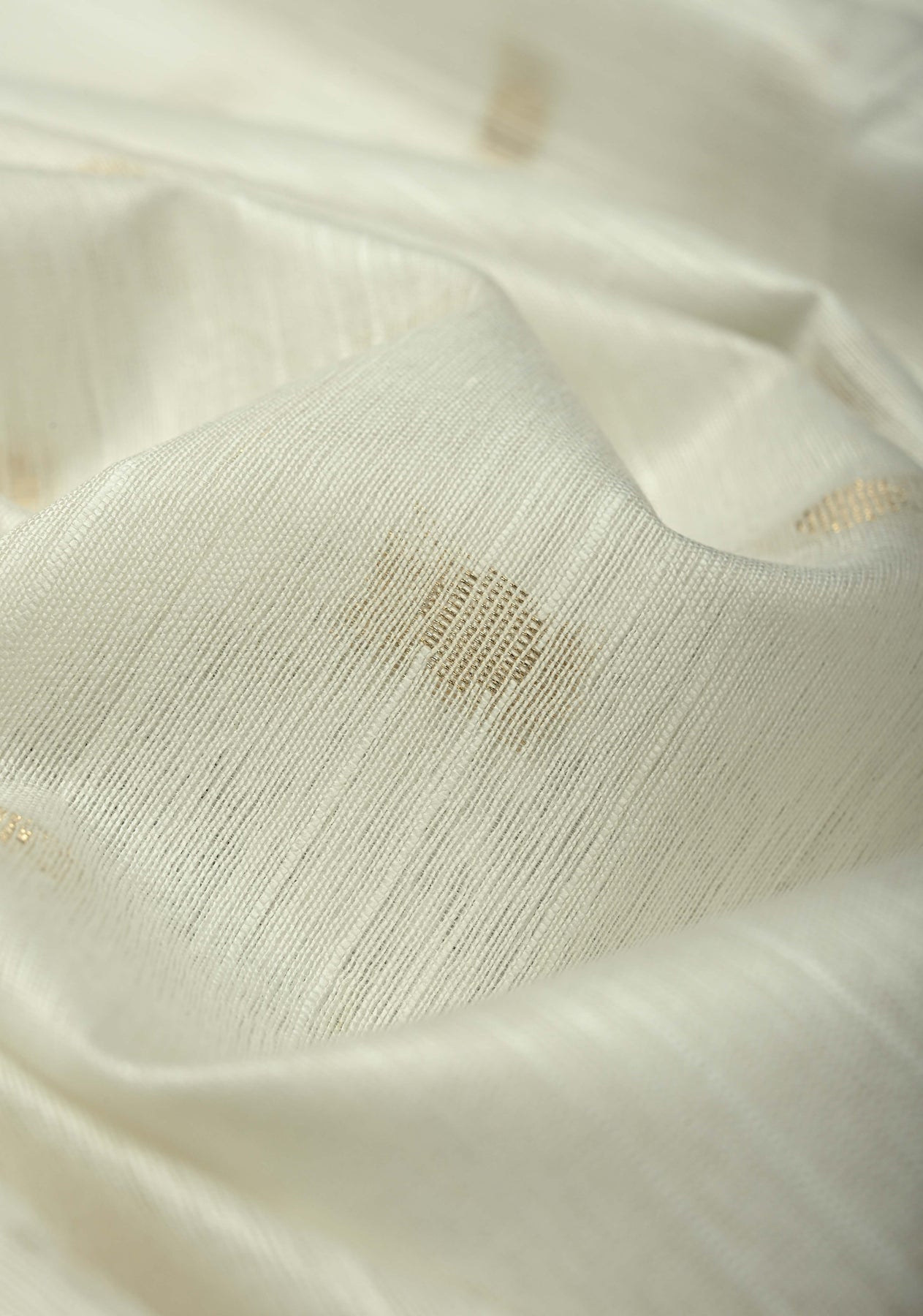 Step into graceful sophistication with this Snow White Semi Tussar Saree, crafted from lightweight semi tussar fabric for a flowing and elegant drape. The saree features delicate zari buttas scattered across the body, adding subtle shimmer and refined charm. A classic zari border enhances its traditional appeal, creating a perfect balance of simplicity and elegance.