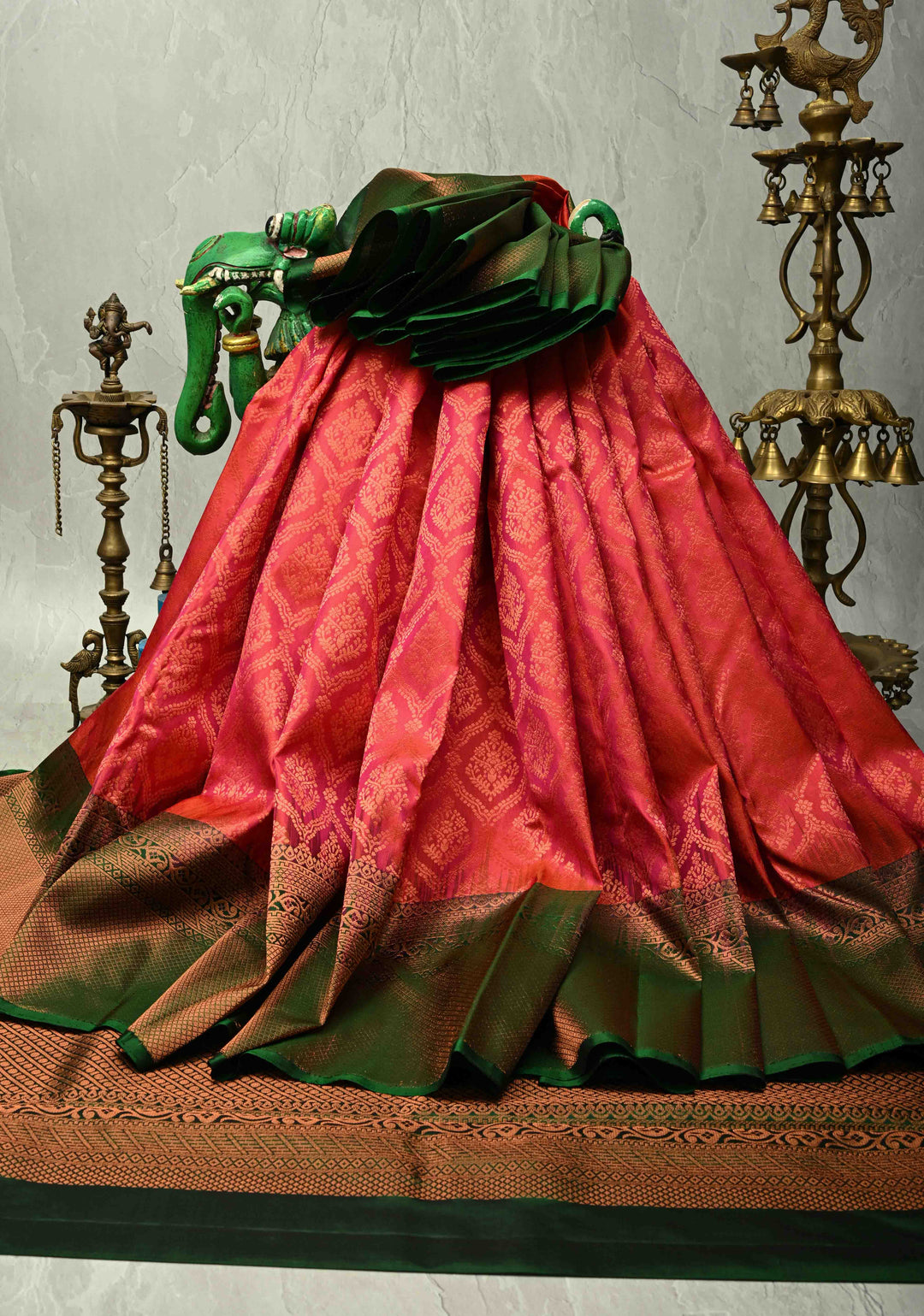 Rani Pink Kanjivaram Soft Silk Saree with Brocade Jaal and Contrast Zari Border | SILK MARK CERTIFIED