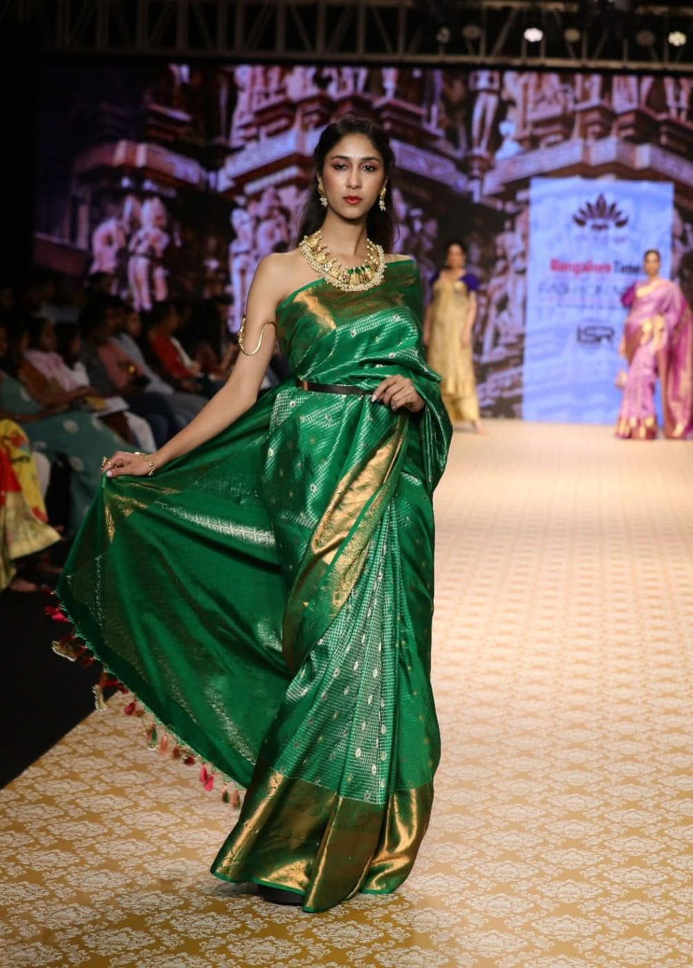 Kolam Linen By Linen embroidery Saree in Black with green selvedges | Sarees By shobitam