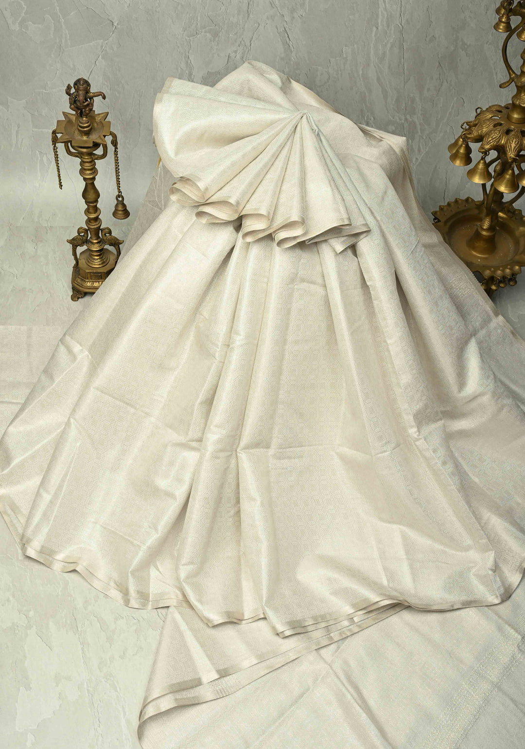 Silver Semi Tussar Saree with Zari Brocade and Minimal Silver Zari Border