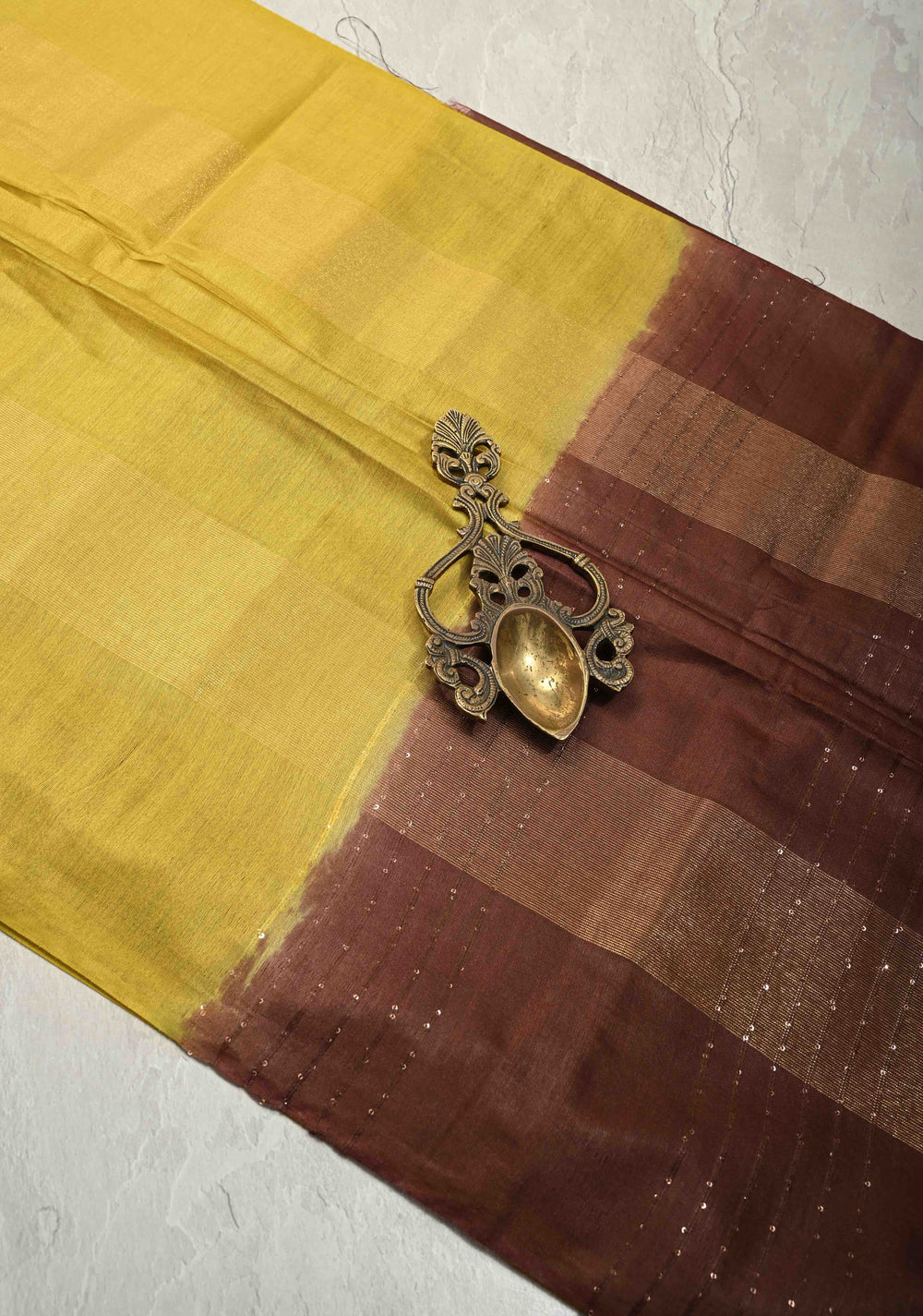 Use a transparent fabric glue or sew on loose sequins carefully to maintain the saree’s flawless appearance.