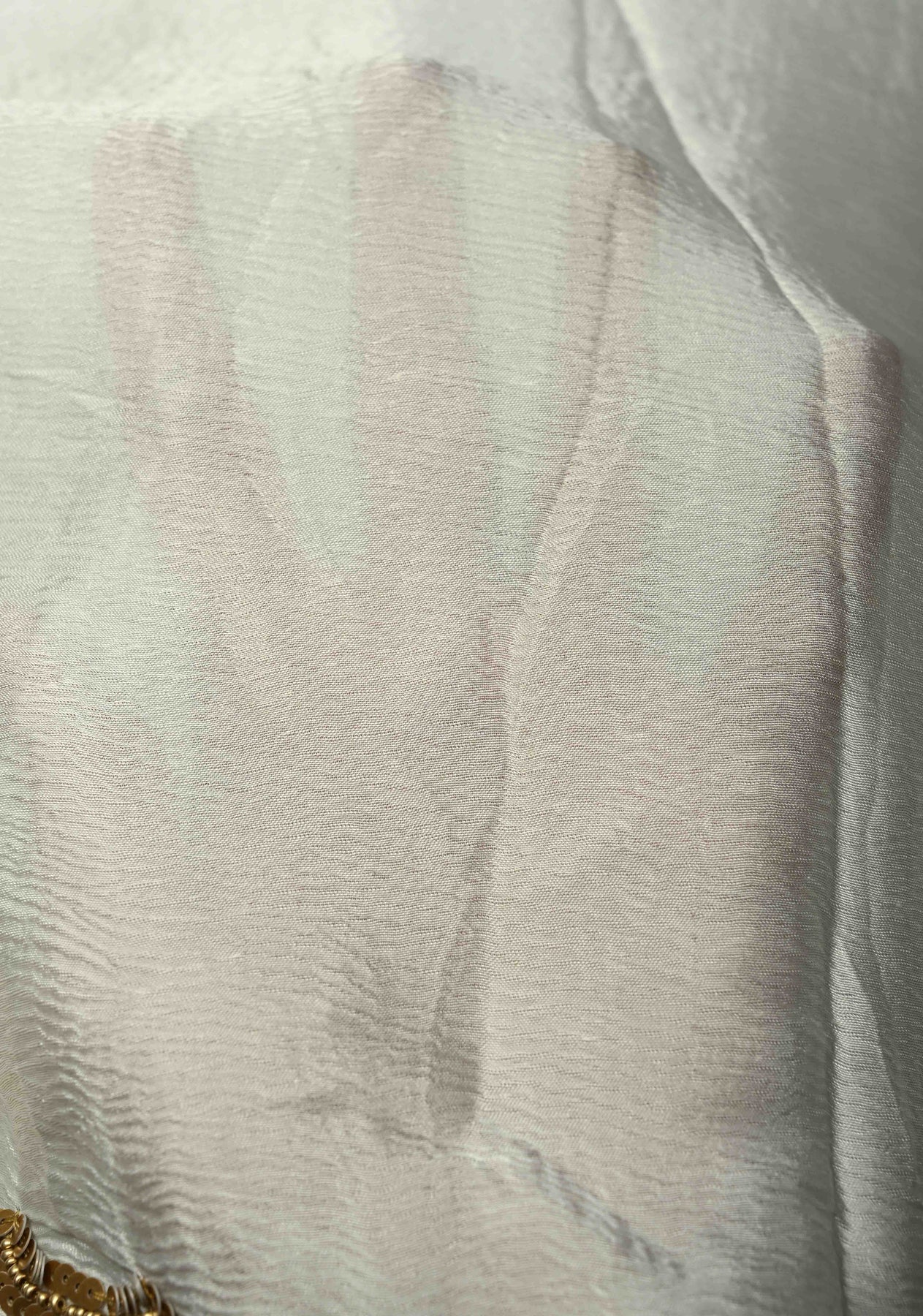 Drape yourself in timeless elegance with this Ivory Satin Georgette Saree, designed to exude subtle and graceful sophistication. The smooth satin-georgette fabric offers a soft, flowing silhouette, while the serene ivory shade adds a touch of understated charm, perfect for day and evening celebrations.