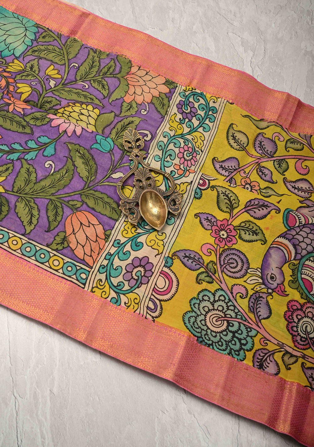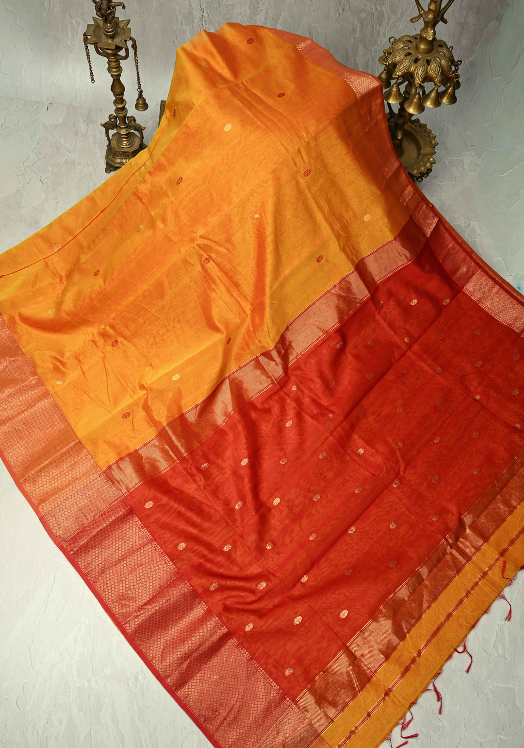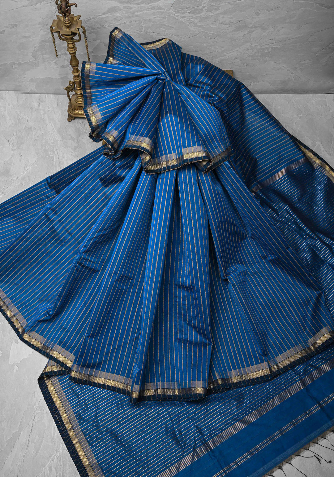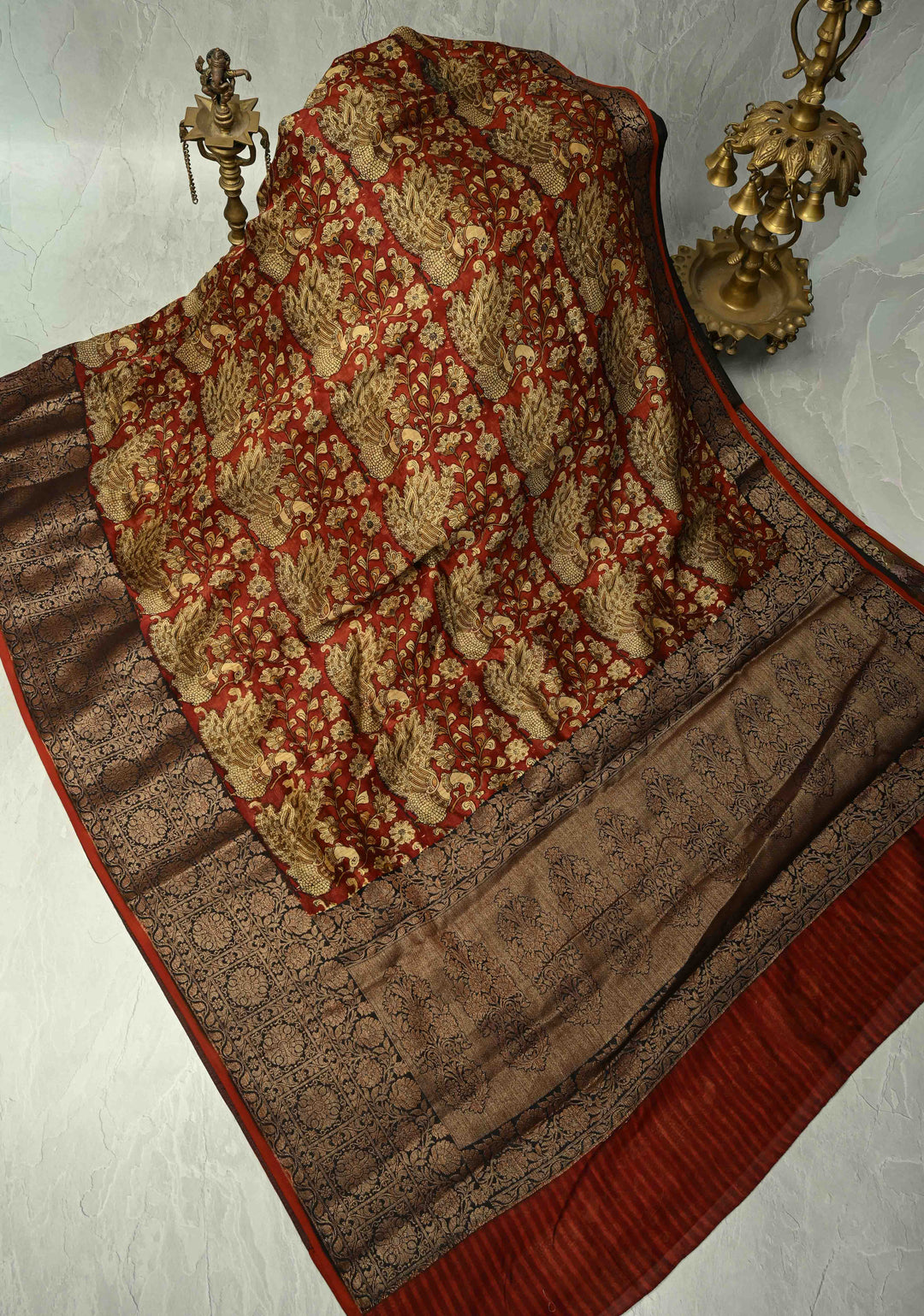 Handle delicate fabrics with care. Avoid wearing heavy jewelry that can snag the fabric and be gentle when draping and folding your saree.