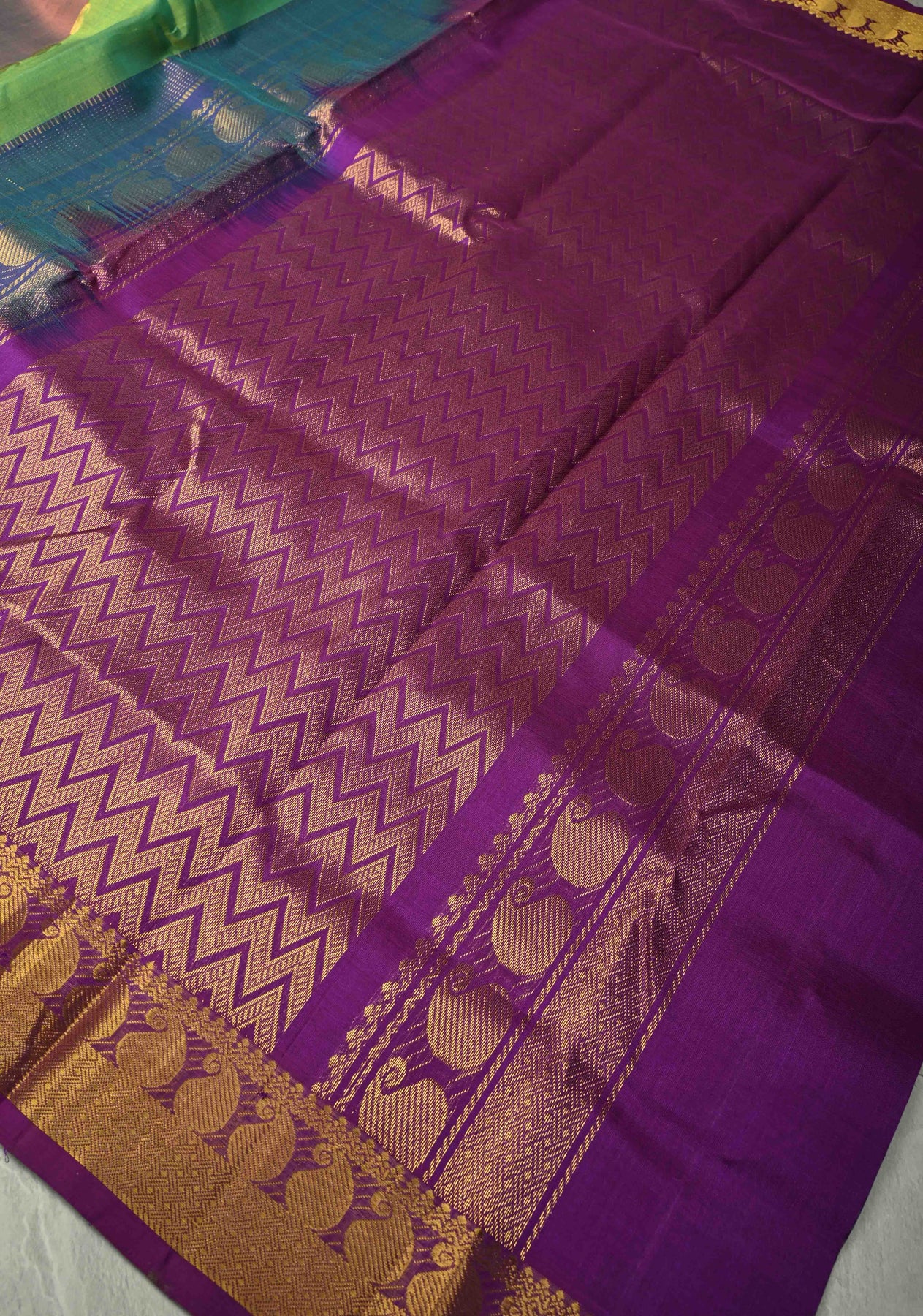 This saree is a testament to the artistry of Kanchi weaving.