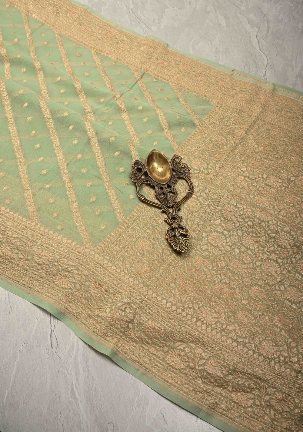 Woven in Varanasi (Banaras), Uttar Pradesh, these sarees are known for their opulent look and intricate Mughal-inspired motifs.