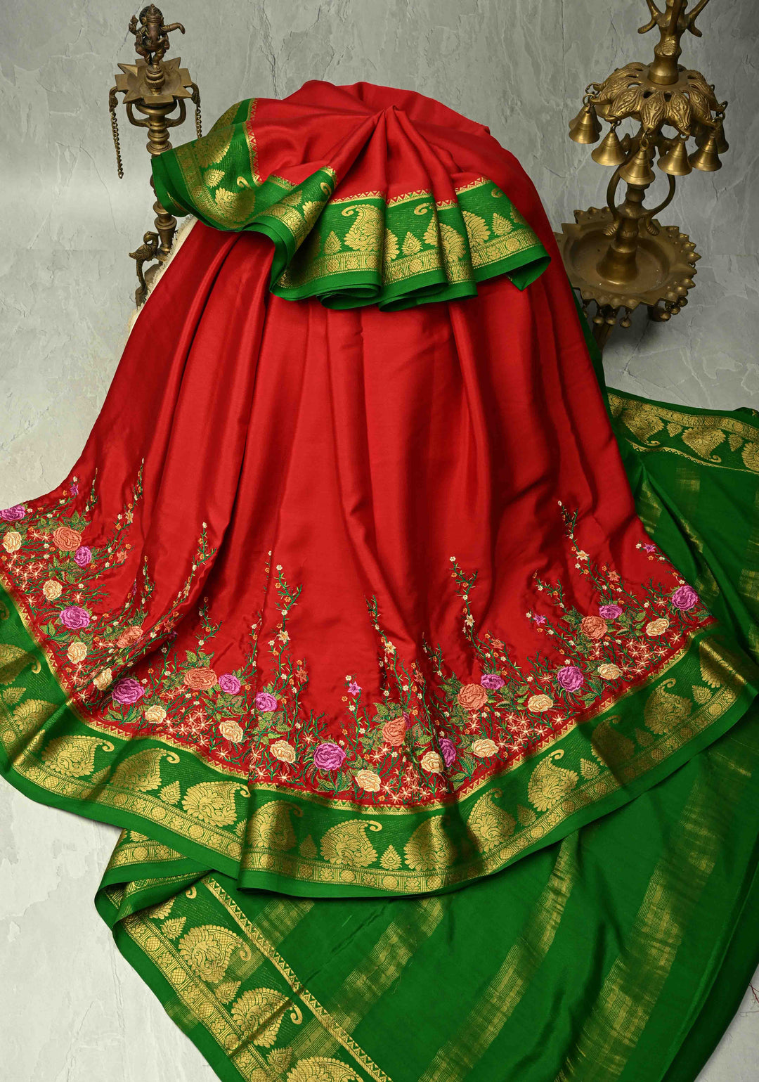 • Mysore silk sarees from Karnataka are simple yet regal, made with the highest purity of silk and a glossy finish.
