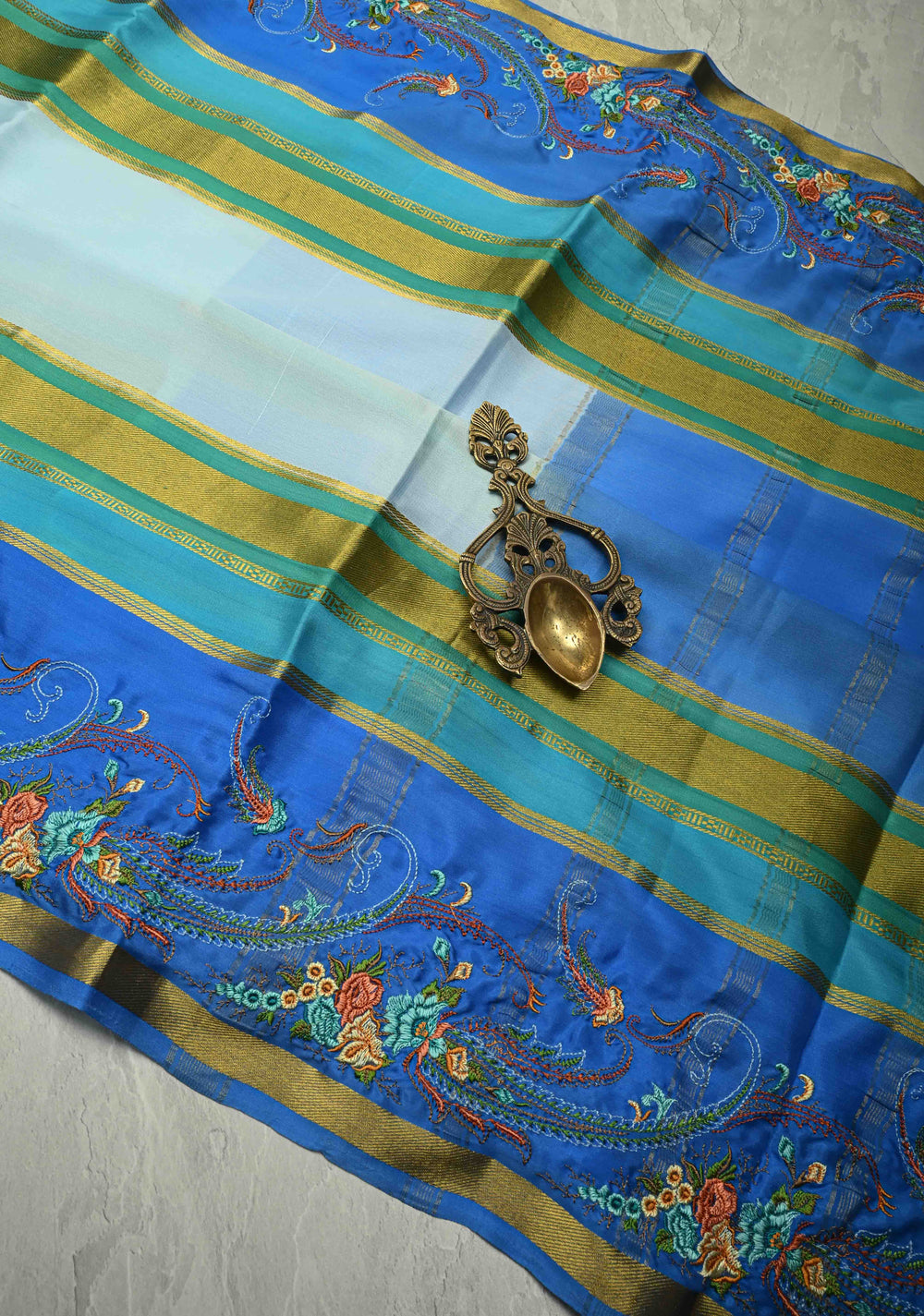 • A white silk saree with intricate gold zari work is considered auspicious and is often chosen for bridal rituals.