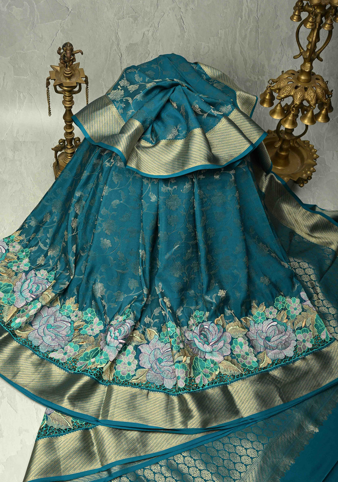 • Woven in Varanasi (Banaras), Uttar Pradesh, these sarees are known for their opulent look and intricate Mughal-inspired motifs.