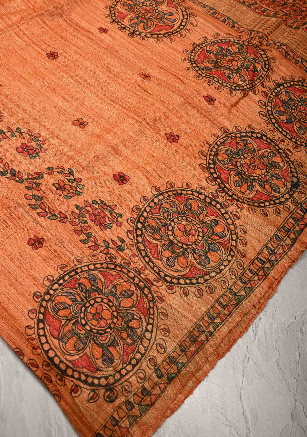 Hand-painted and block-printed Tussar sarees are quite popular, featuring tribal, nature-inspired, and abstract motifs.