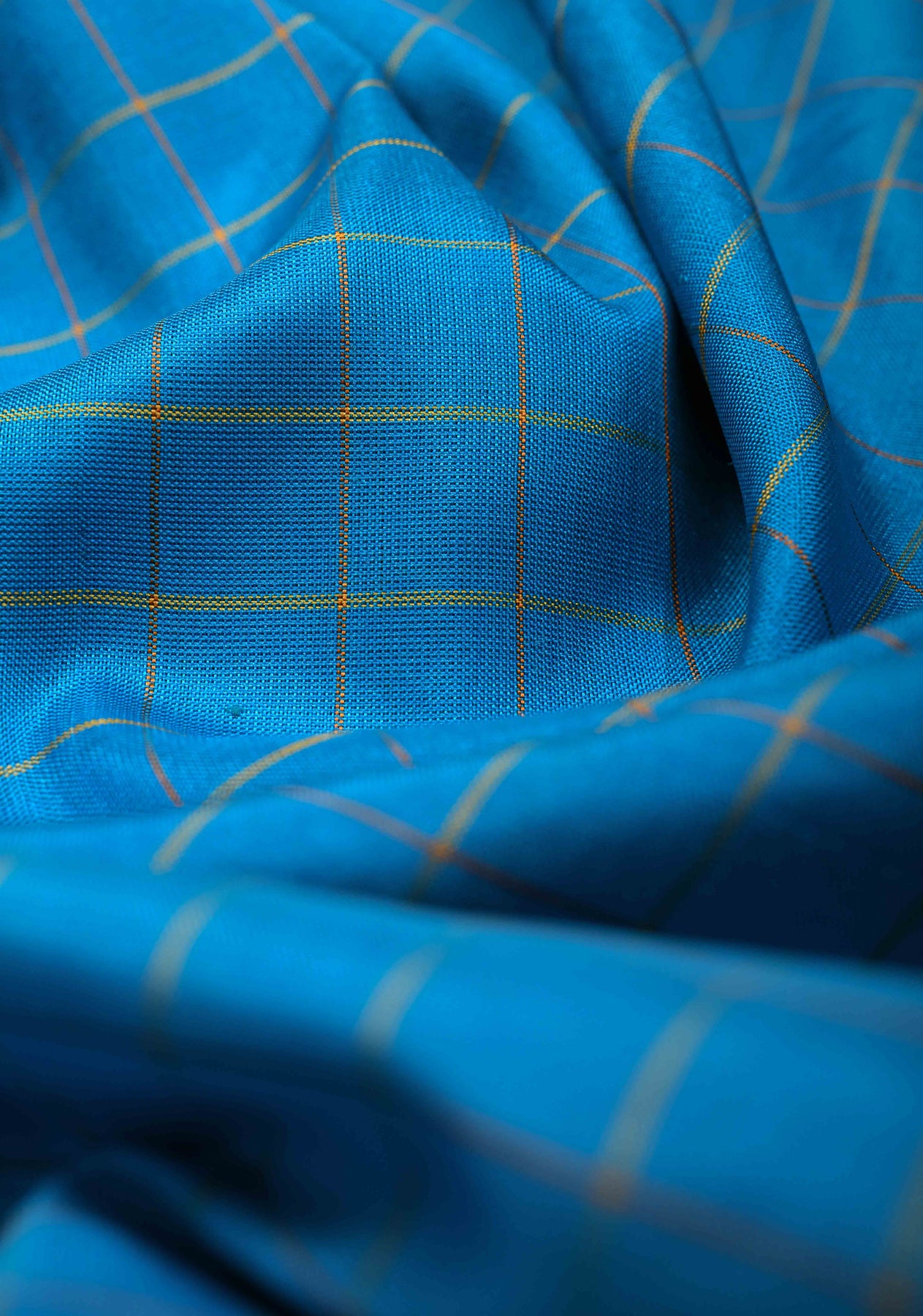 Step into timeless elegance with this Ananda Blue Uppada Handloom Silk Saree, exquisitely handcrafted to showcase classic artistry. Woven from Uppada silk, the saree features a subtle checks design that adds contemporary charm and visual texture. The contrast border enhances its regal appeal, creating a striking balance of sophistication and heritage. Lightweight and gracefully draped, this saree is perfect for weddings, festive occasions, and special celebrations. Pair it with traditional jewelry for a refined and elegant ethnic look.