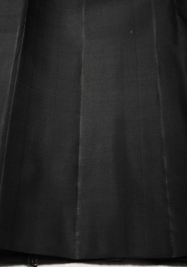 This striking Black-White Vintage Checks Kanjivaram Pure Silk Saree is a captivating blend of classic patterns and rich storytelling. Woven from pure silk, the saree features timeless black and white checks that add a vintage charm to its elegant body. The standout element is the intricately designed skirt border, adorned with detailed mythological motifs woven in zari, bringing traditional tales and cultural heritage to life. Perfect for festive occasions and cultural celebrations, this saree combines bold patterns with exquisite craftsmanship for a truly unique look.