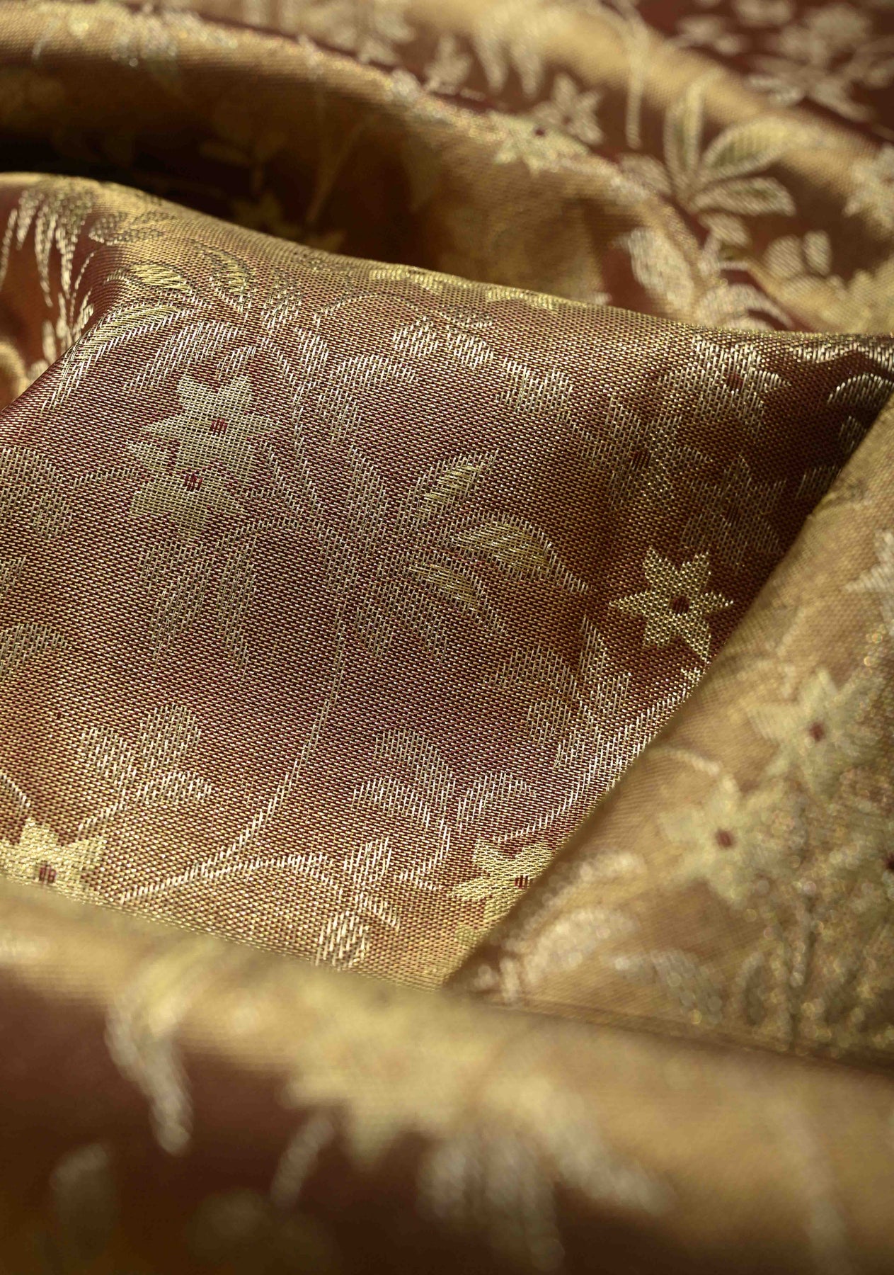 Exude timeless sophistication with this Brown Tissue Kanjivaram Pure Silk Saree, expertly crafted from tissue silk. Adorned with intricate Meenakari floral jaal brocade, the saree showcases delicate artistry and traditional elegance. The contrast zari border enhances its regal charm, making it perfect for weddings, festive occasions, and special celebrations. Lightweight and gracefully draped, this saree ensures a classic and refined look. Pair it with traditional jewelry for an effortlessly elegant ensemble.