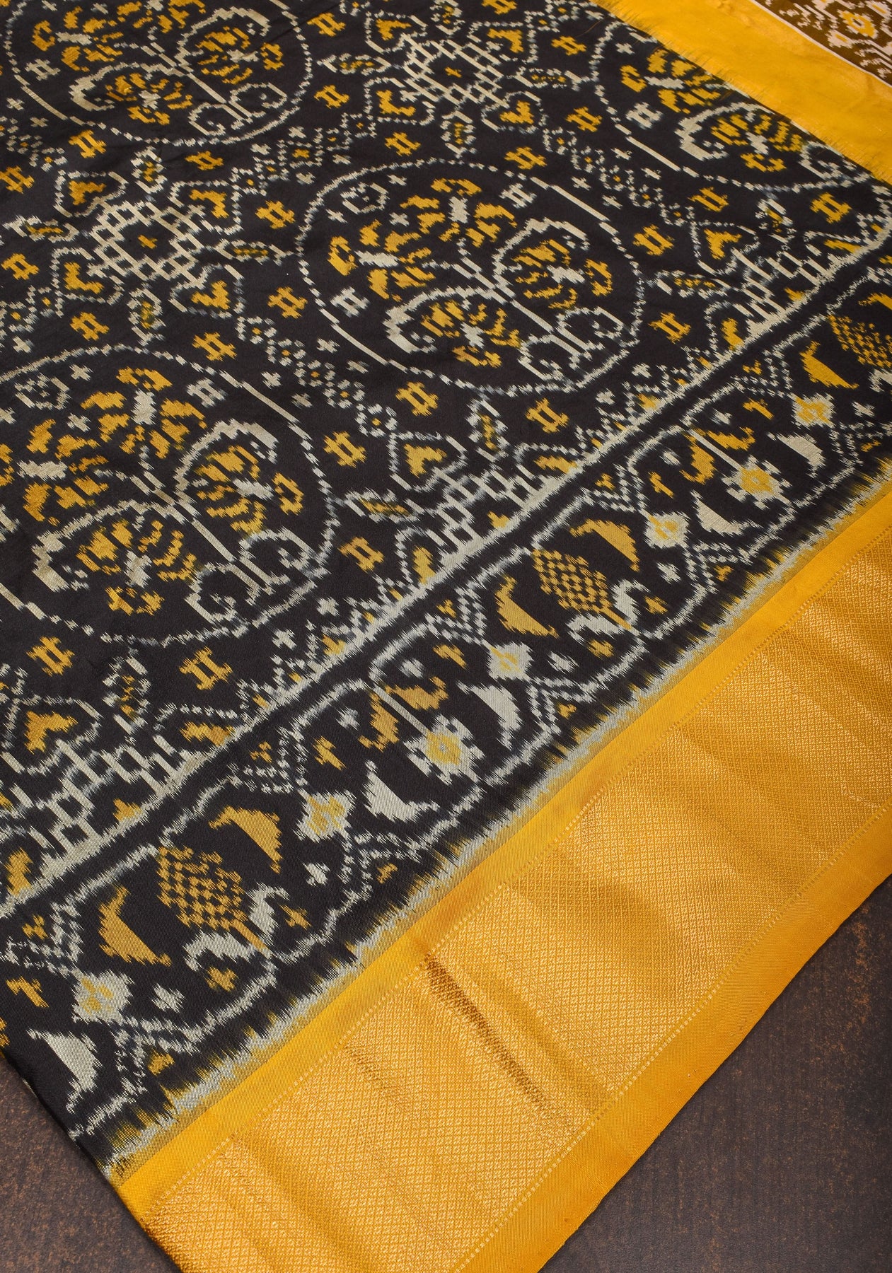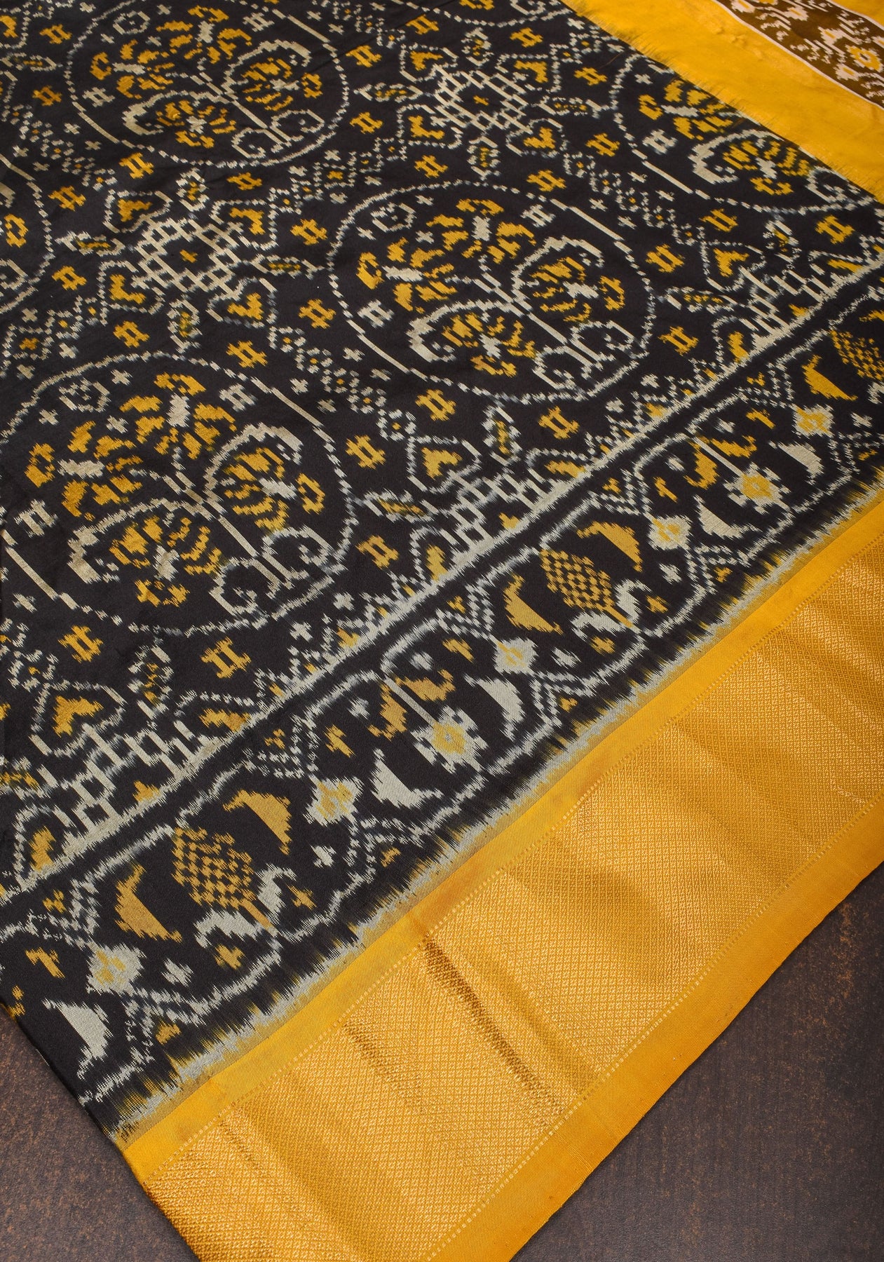 The Ikkat weaving technique involves resist-dyeing the yarns before weaving, resulting in bold and intricate patterns that are unique to each saree. The exquisite motifs and geometric designs created through Ikkat weaving add depth and dimension to the fabric, creating a mesmerizing visual effect.