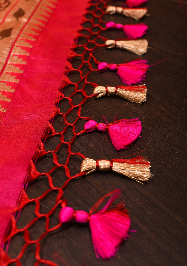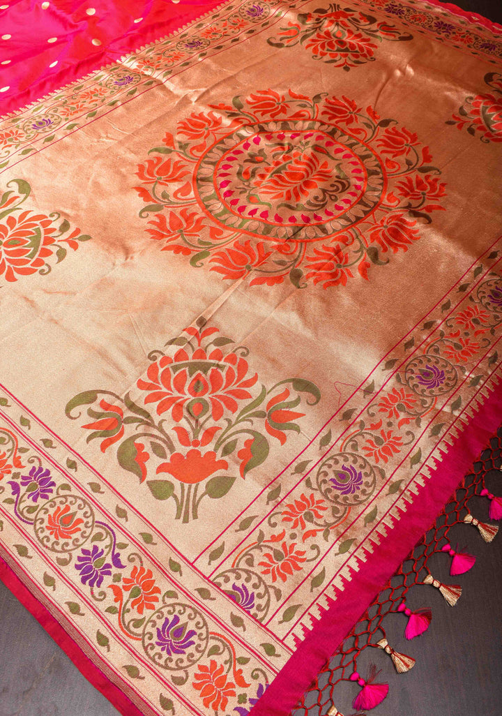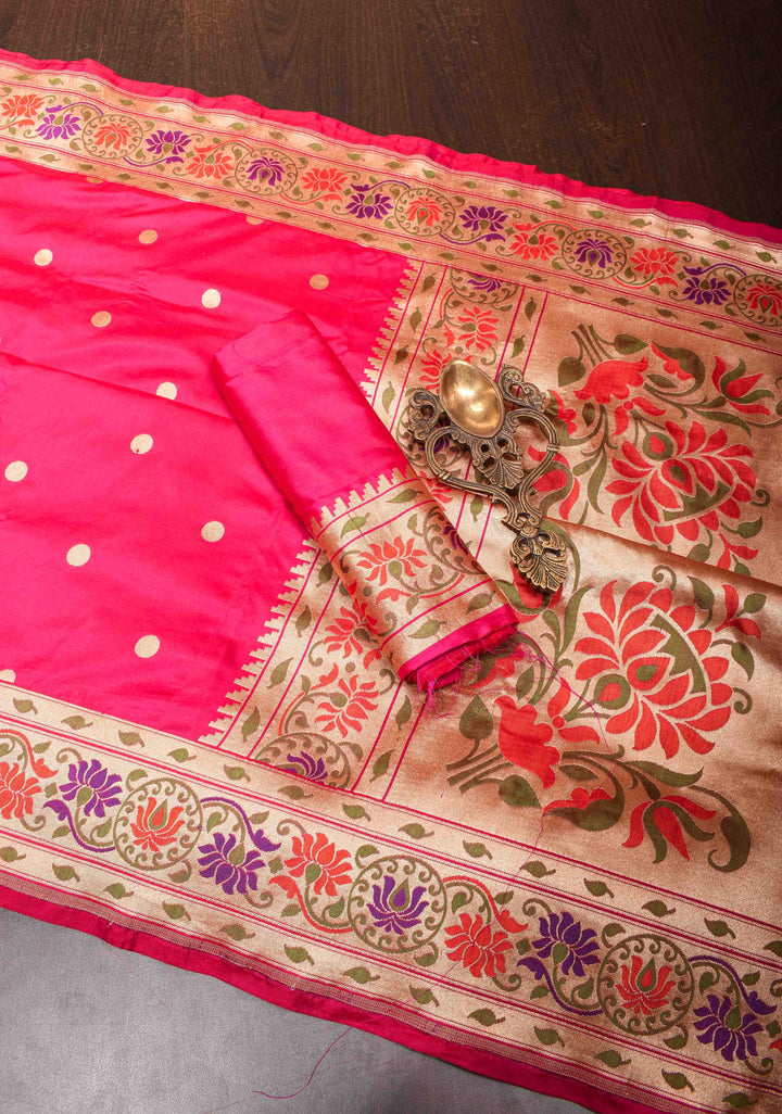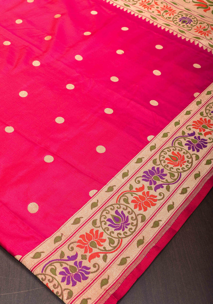 Dark Pink Pure Banarasi Katan Silk Saree with Paithani Style Borders | SILK MARK CERTIFIED