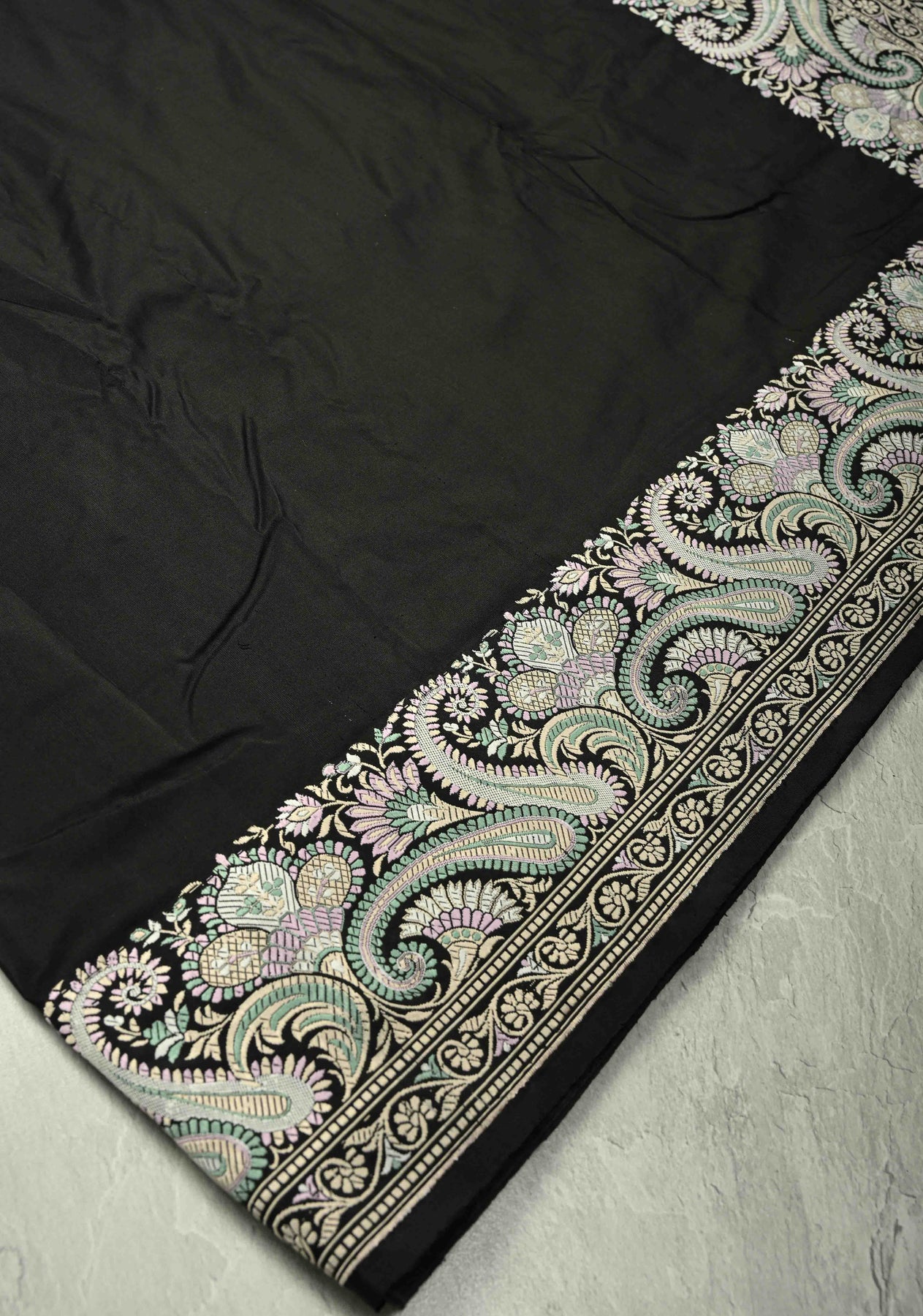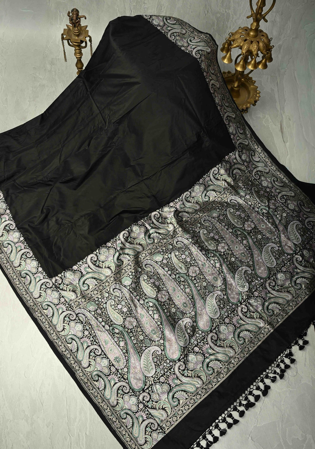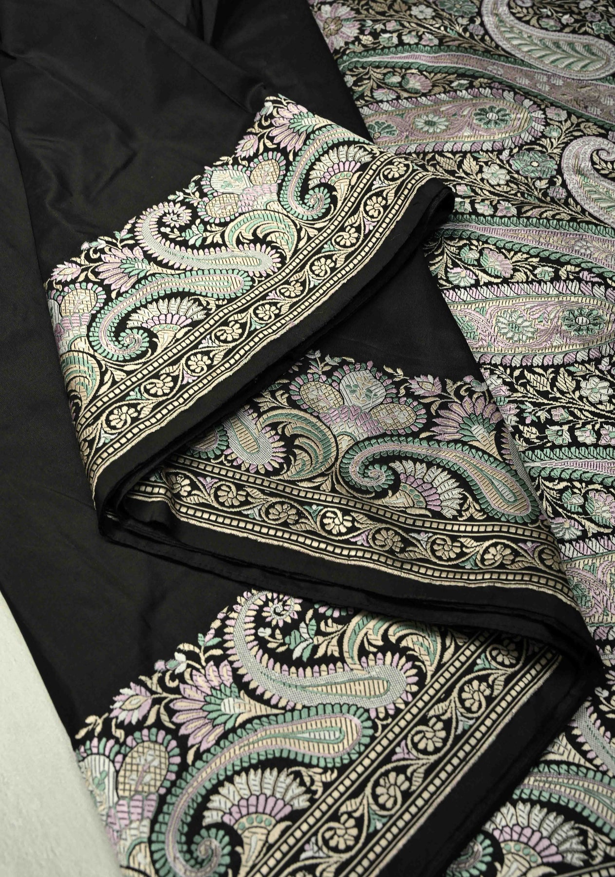 Black Banarasi Katan Silk Saree with Meenakari Pashmina Design on Pallu and Border | SILK MARK CERTIFIED
