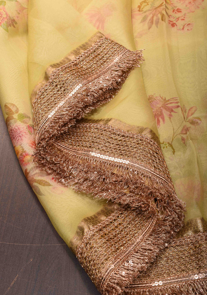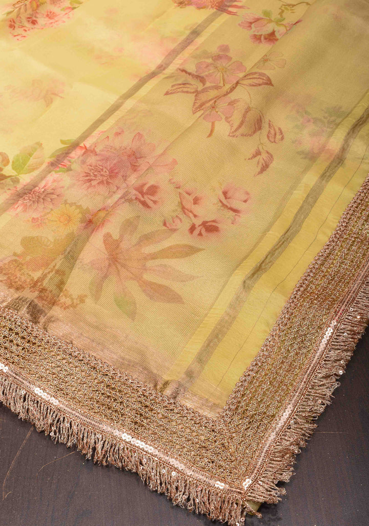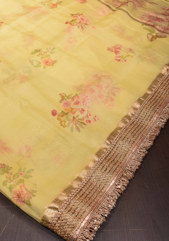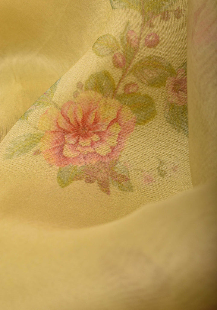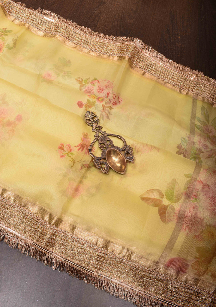Discover the beauty of this Pure Organza Silk Saree in a refreshing Yellow shade, adorned with a stunning floral digital print that adds a contemporary flair. The delicate lace trim border enhances its elegance, making it the perfect choice for weddings, celebrations, and festive occasions. Crafted from lightweight, breathable organza silk, this saree offers both comfort and style, creating a sophisticated, graceful look that will leave a lasting impression. Ideal for those who appreciate timeless fashion with a modern twist.