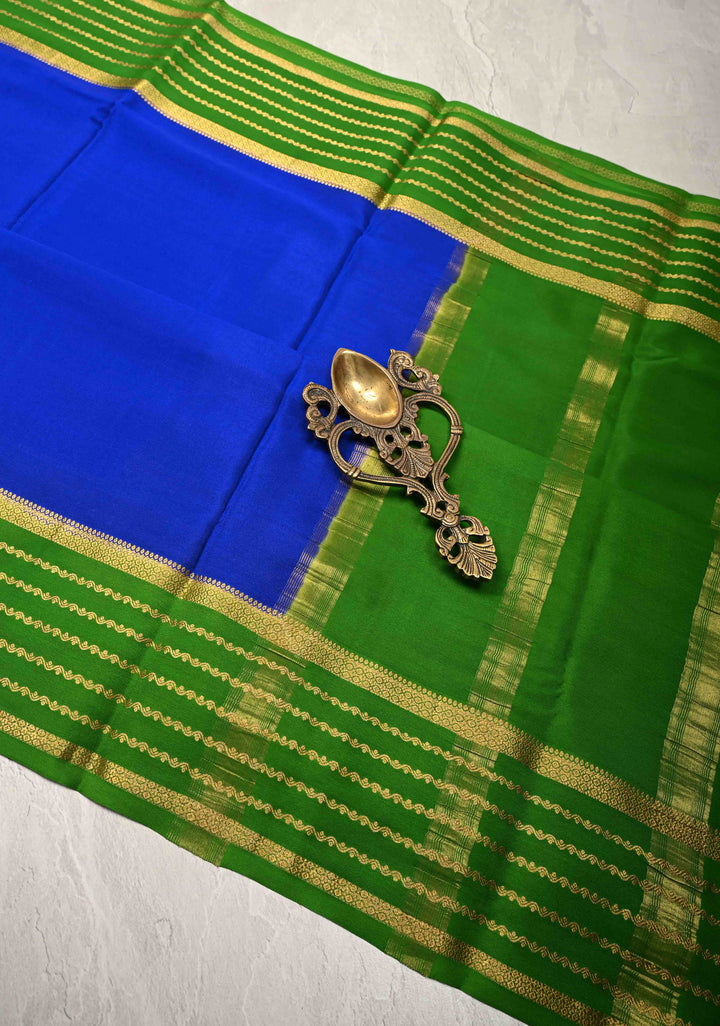 Timeless, elegant, and regal — this Royal Blue Mysore Silk Saree is a stunning example of traditional craftsmanship paired with refined sophistication. Made from authentic silk, it offers a rich texture, graceful drape, and the perfect thickness that defines premium Mysore silks.