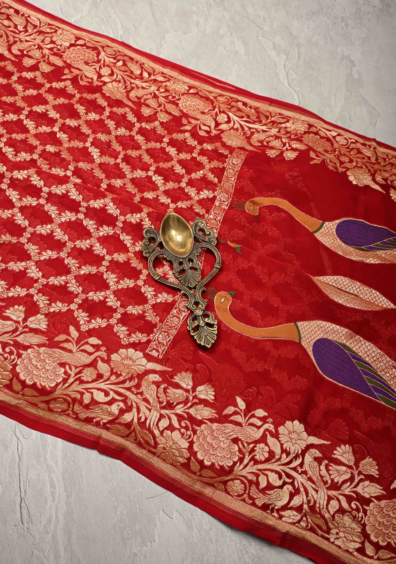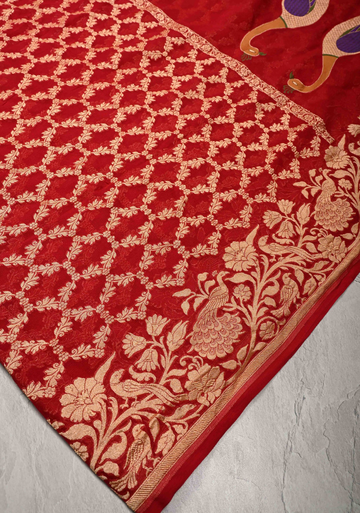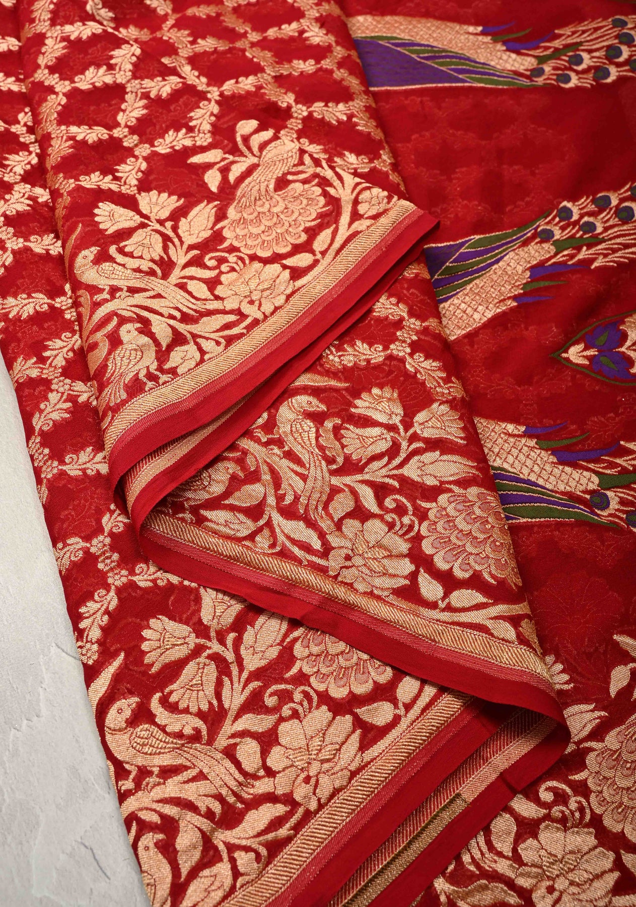 Teal Blue Banarasi Georgette Silk Saree with Zari Jaal and Resplendent Peacock Meenakari Pallu | SILK MARK CERTIFIED (Copy)