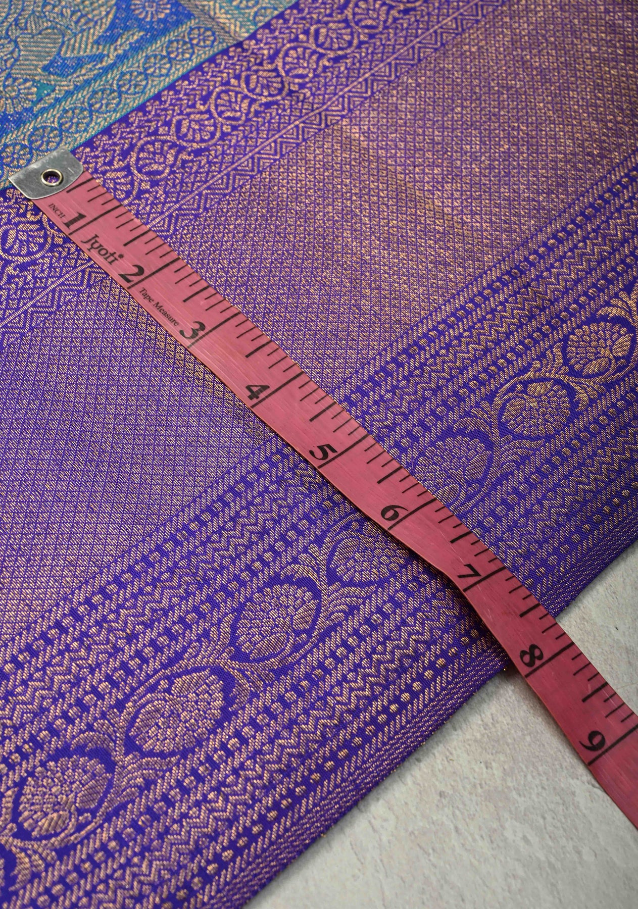 Radiate elegance and sophistication with this Turquoise Blue Kanjivaram Pure Silk Saree, crafted from silk that offers a sheen, smooth texture, and graceful drape. Perfect for weddings, festive celebrations, and traditional gatherings, this saree is a statement of timeless artistry and regal charm.