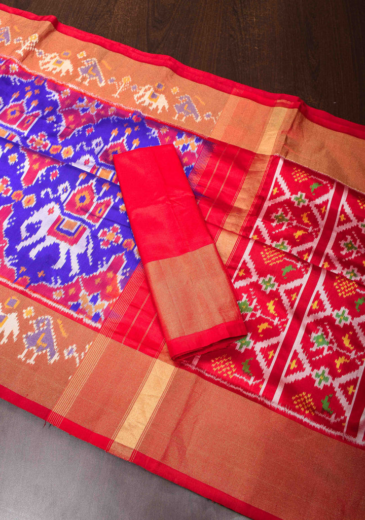 This Violet Ikkat Pure Silk Saree is a stunning blend of traditional artistry and contemporary charm. The violet color forms a luxurious base, while the intricate Ikkat weaving technique creates beautiful patterns that add texture and depth to the fabric. The saree is adorned with exquisite elephant motifs, symbolizing strength and wisdom, which enhance its cultural significance and timeless appeal.