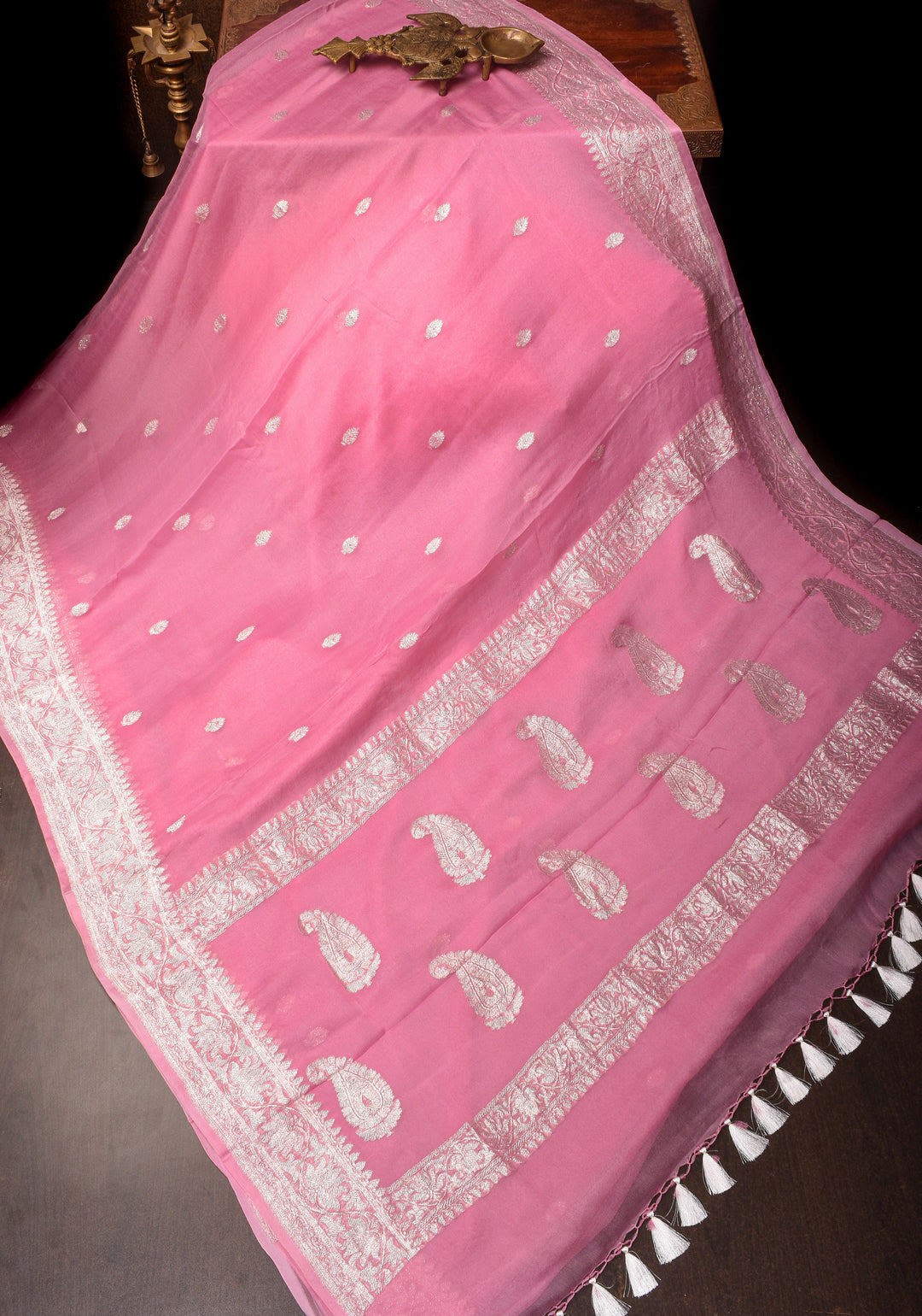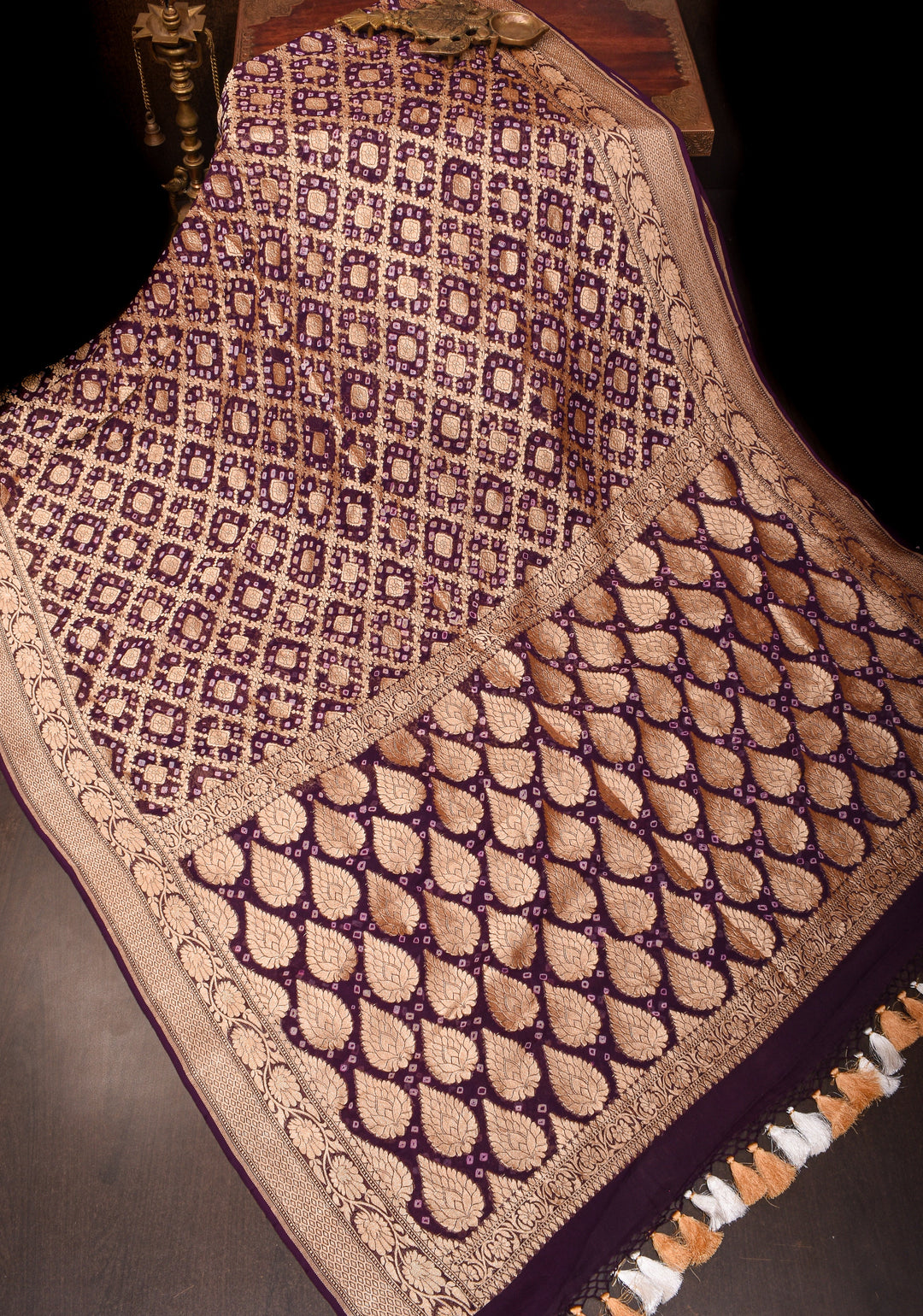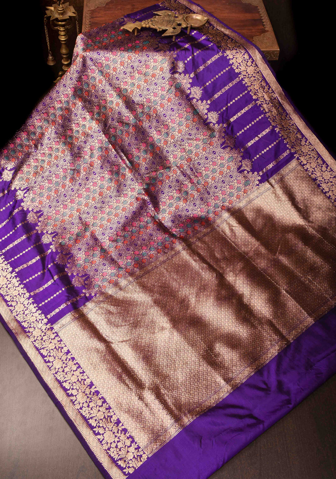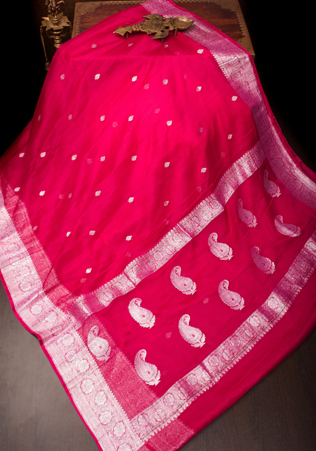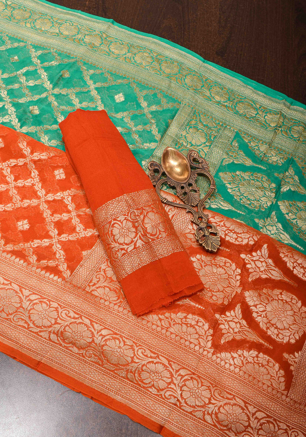 • Woven in Varanasi (Banaras), Uttar Pradesh, these sarees are known for their opulent look and intricate Mughal-inspired motifs.