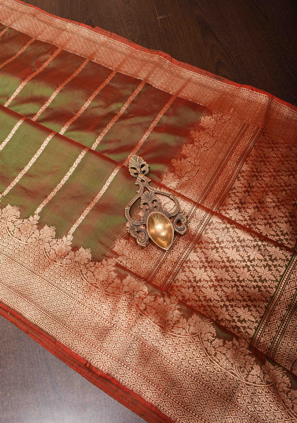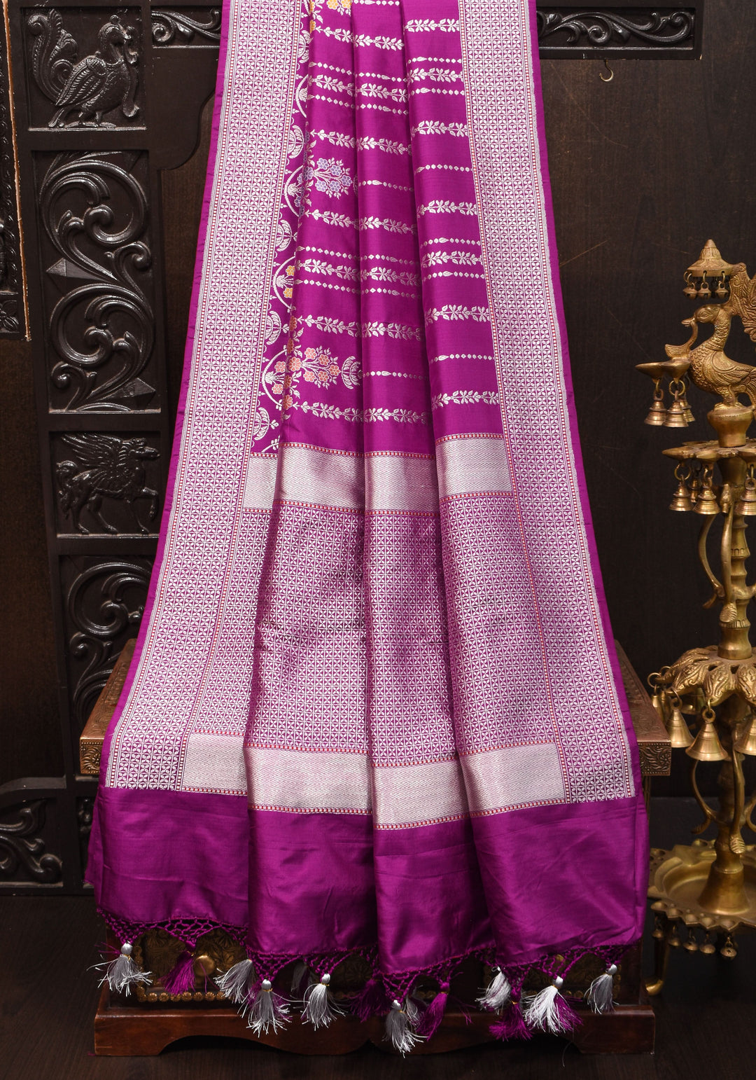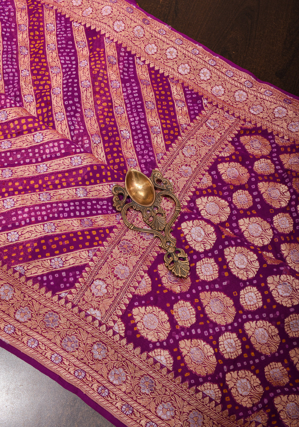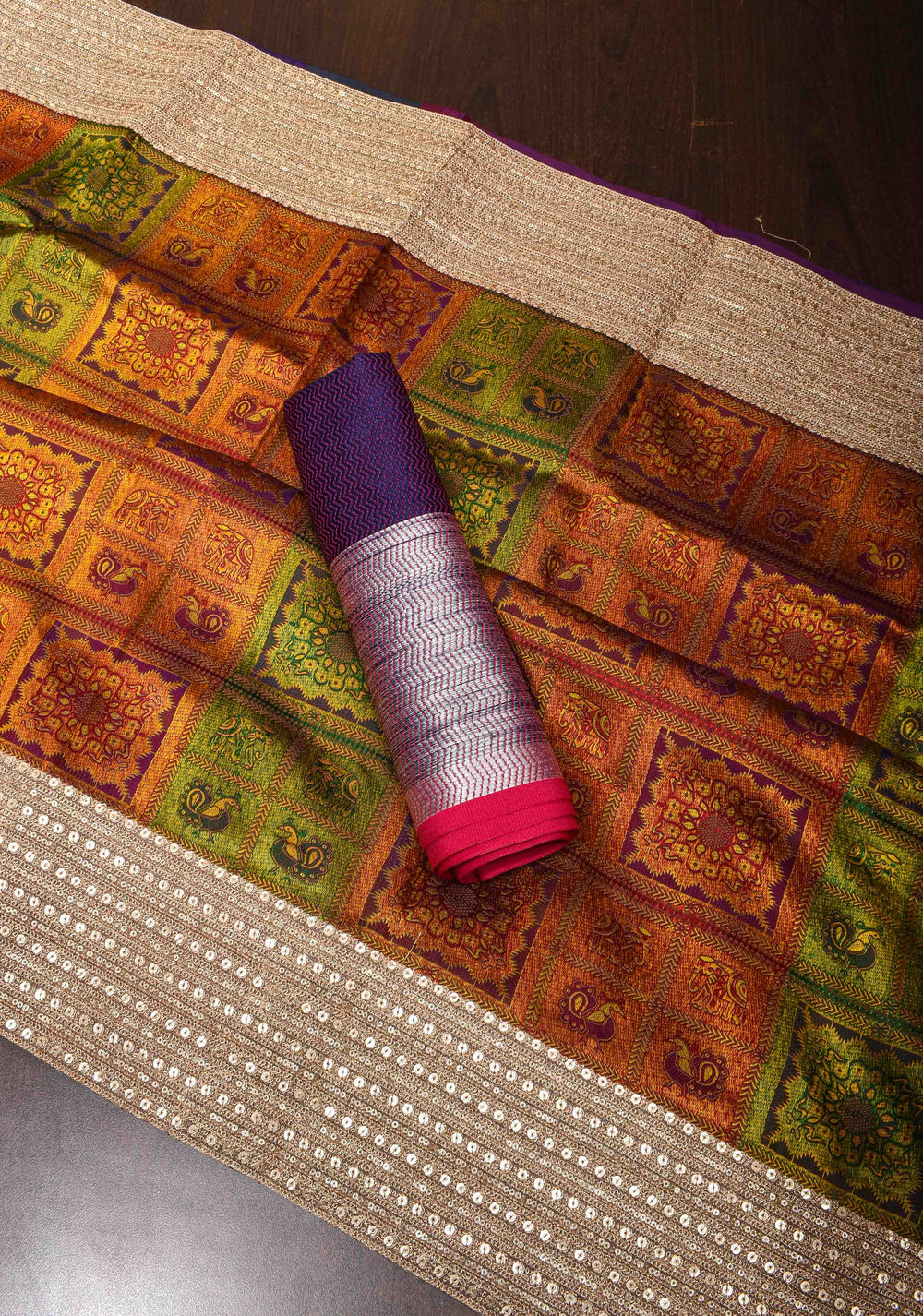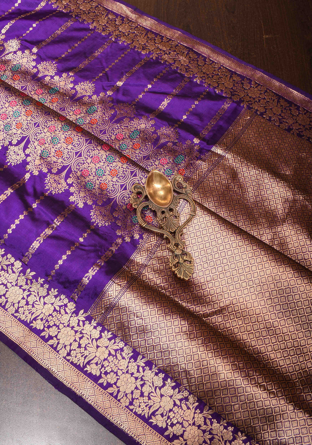 • Woven in Varanasi (Banaras), Uttar Pradesh, these sarees are known for their opulent look and intricate Mughal-inspired motifs.