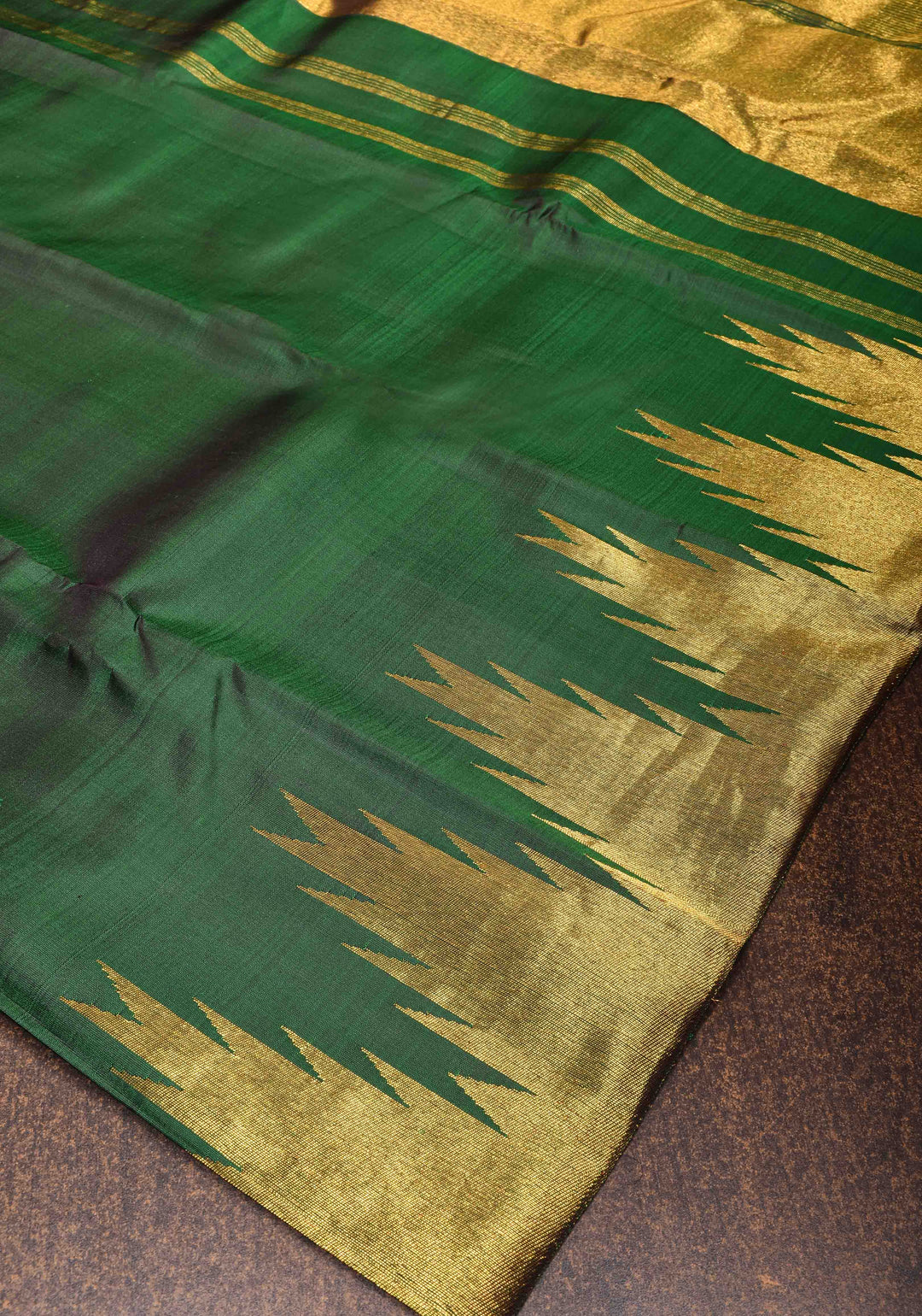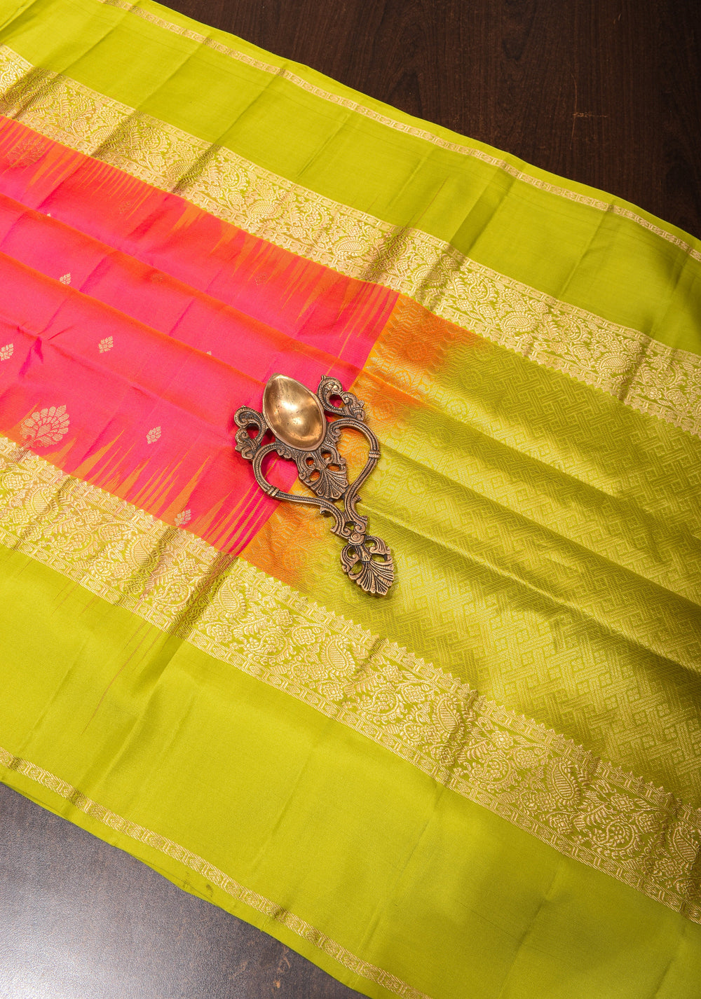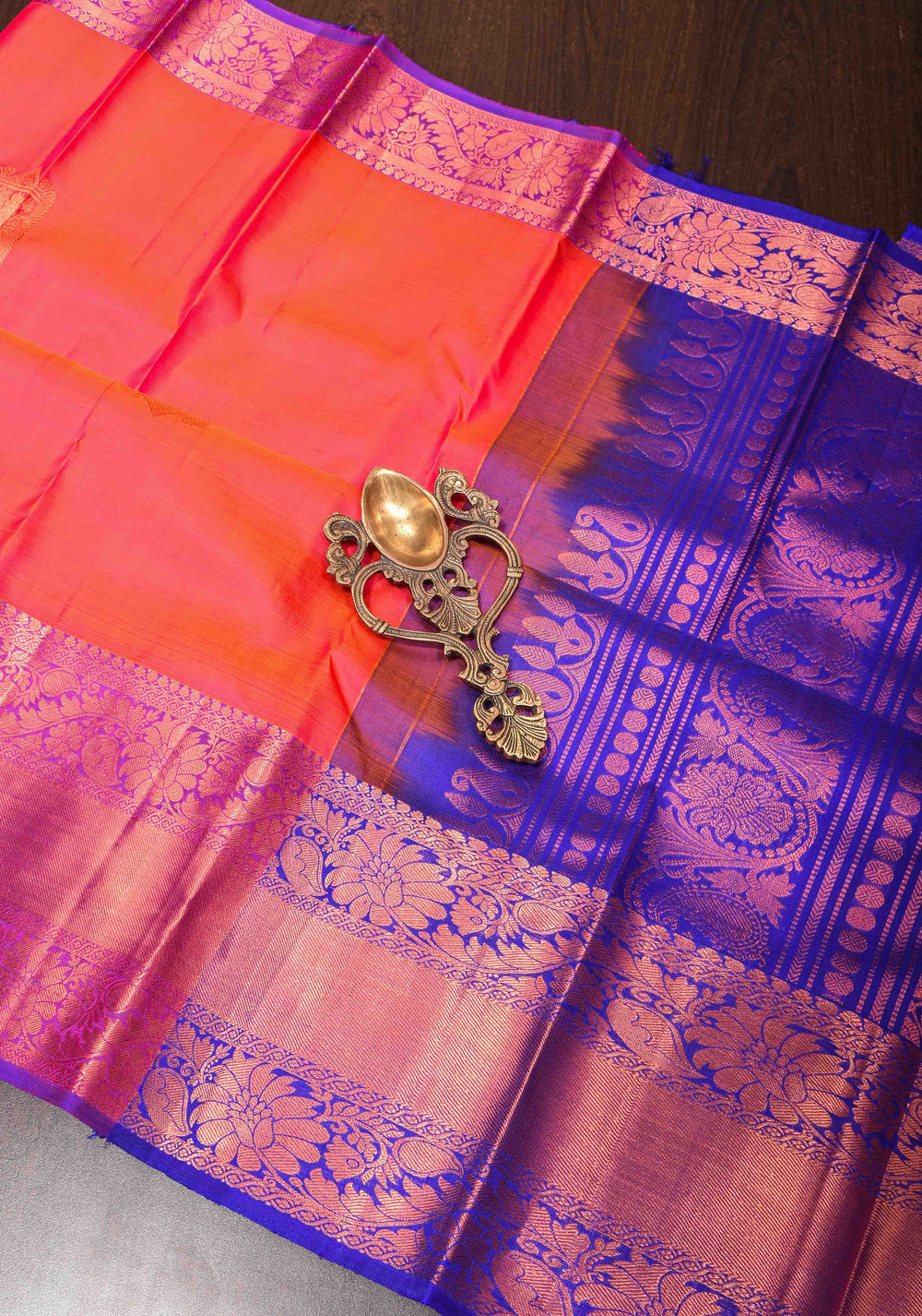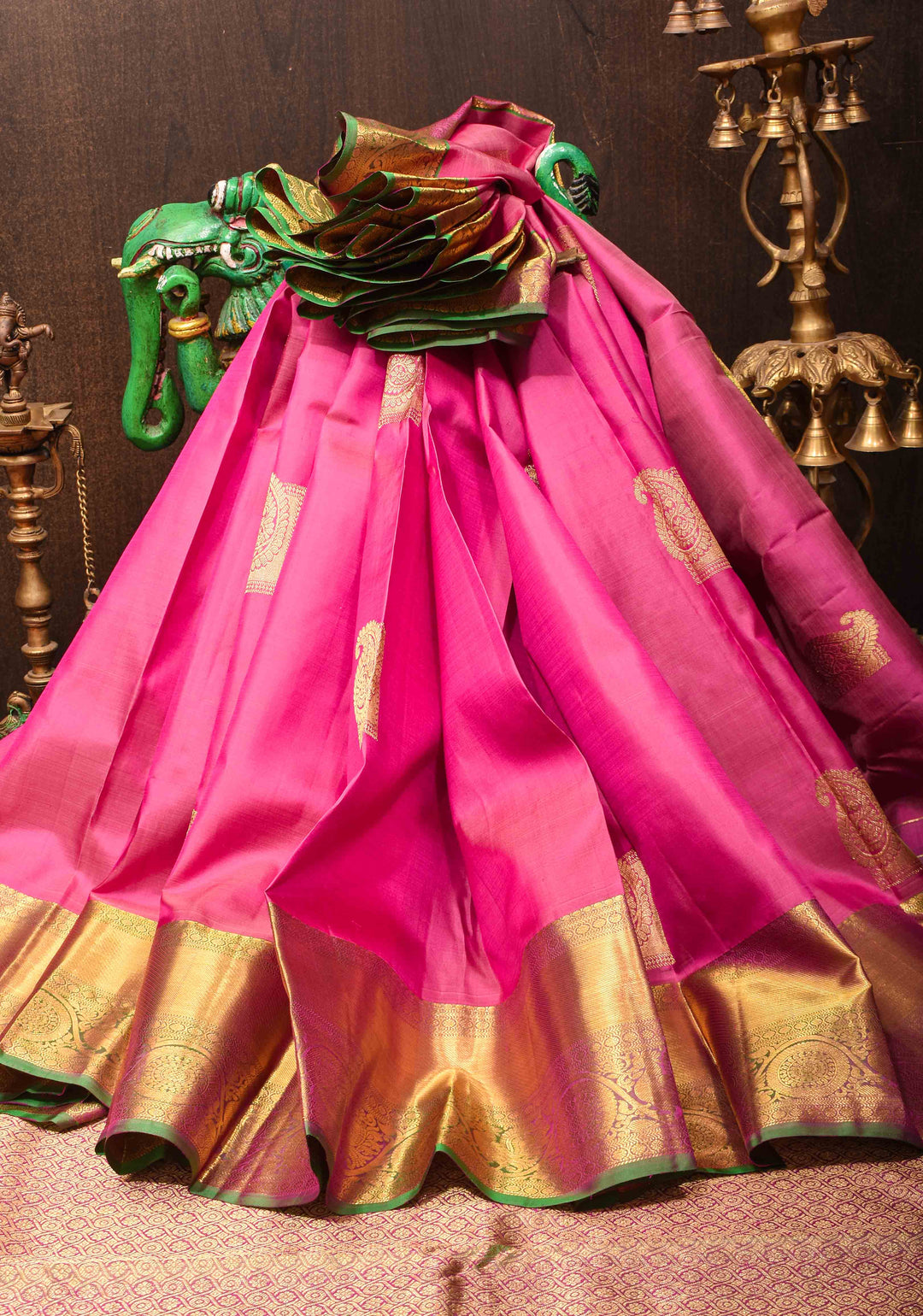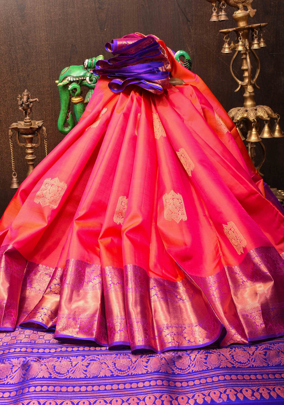 • Originating from Kanchipuram, Tamil Nadu, these sarees are famous for their bold colors, thick borders, and intricate gold zari work.