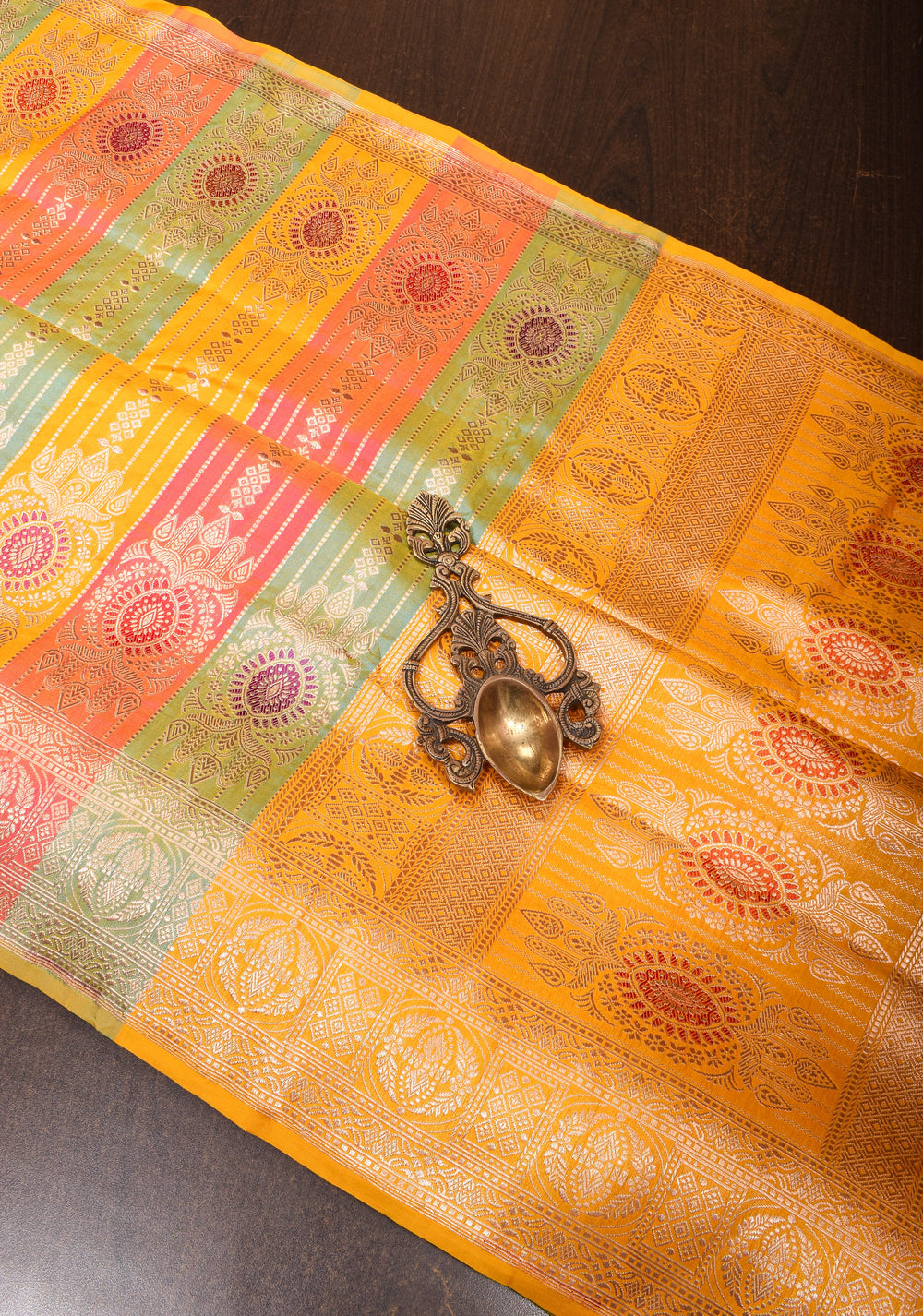 • The art of silk weaving flourished during the reign of powerful dynasties like the Mauryas and Guptas, who encouraged local artisans to develop intricate designs.