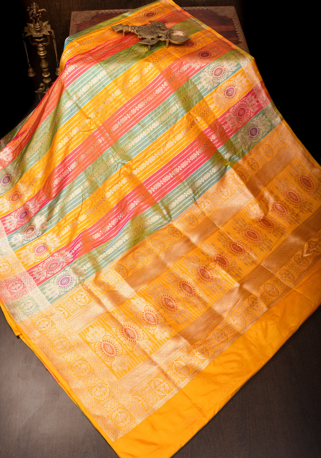 • In ancient times, silk sarees were exclusively woven for royals, temple deities, and nobility, making them symbols of divine grace and social status.