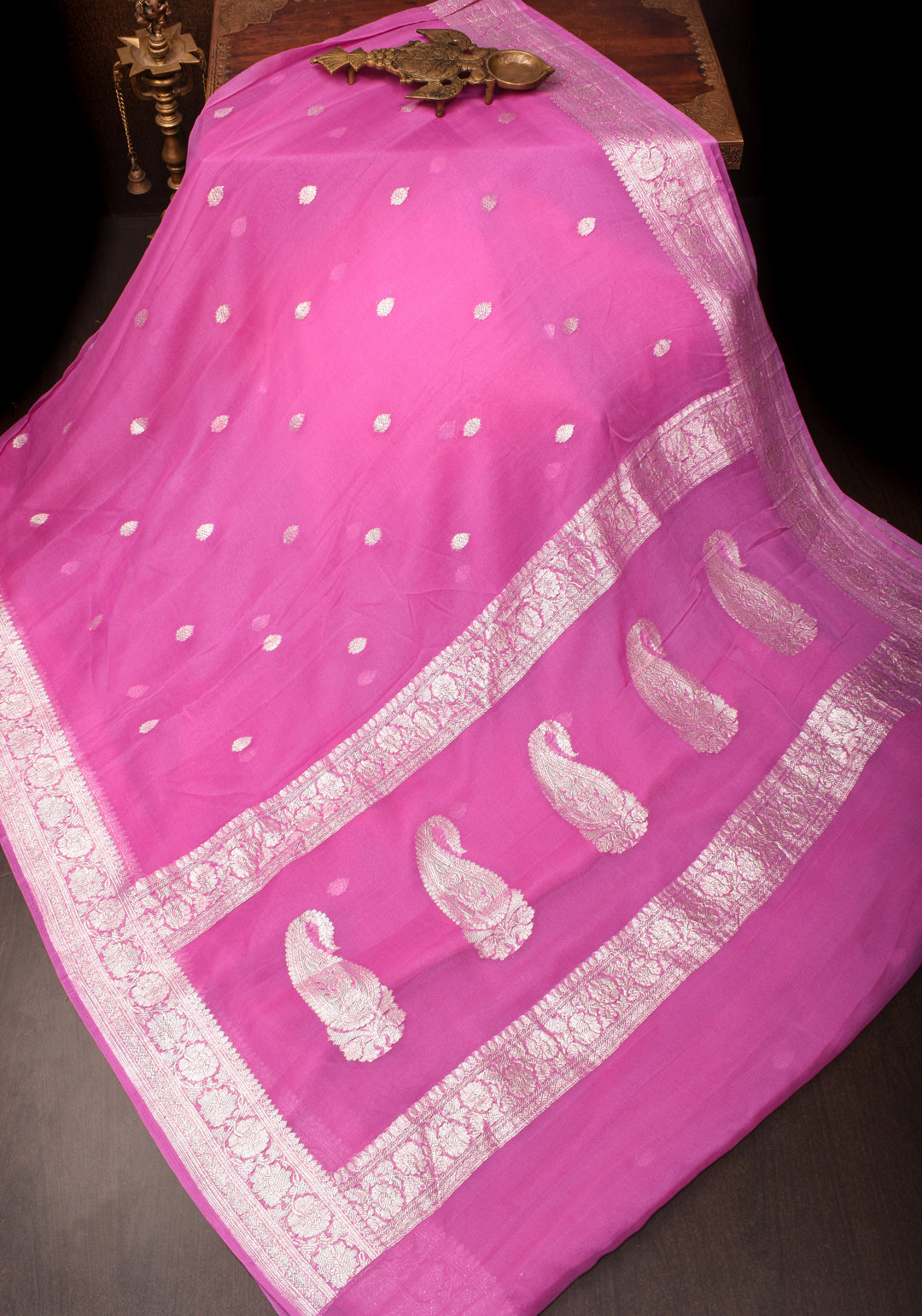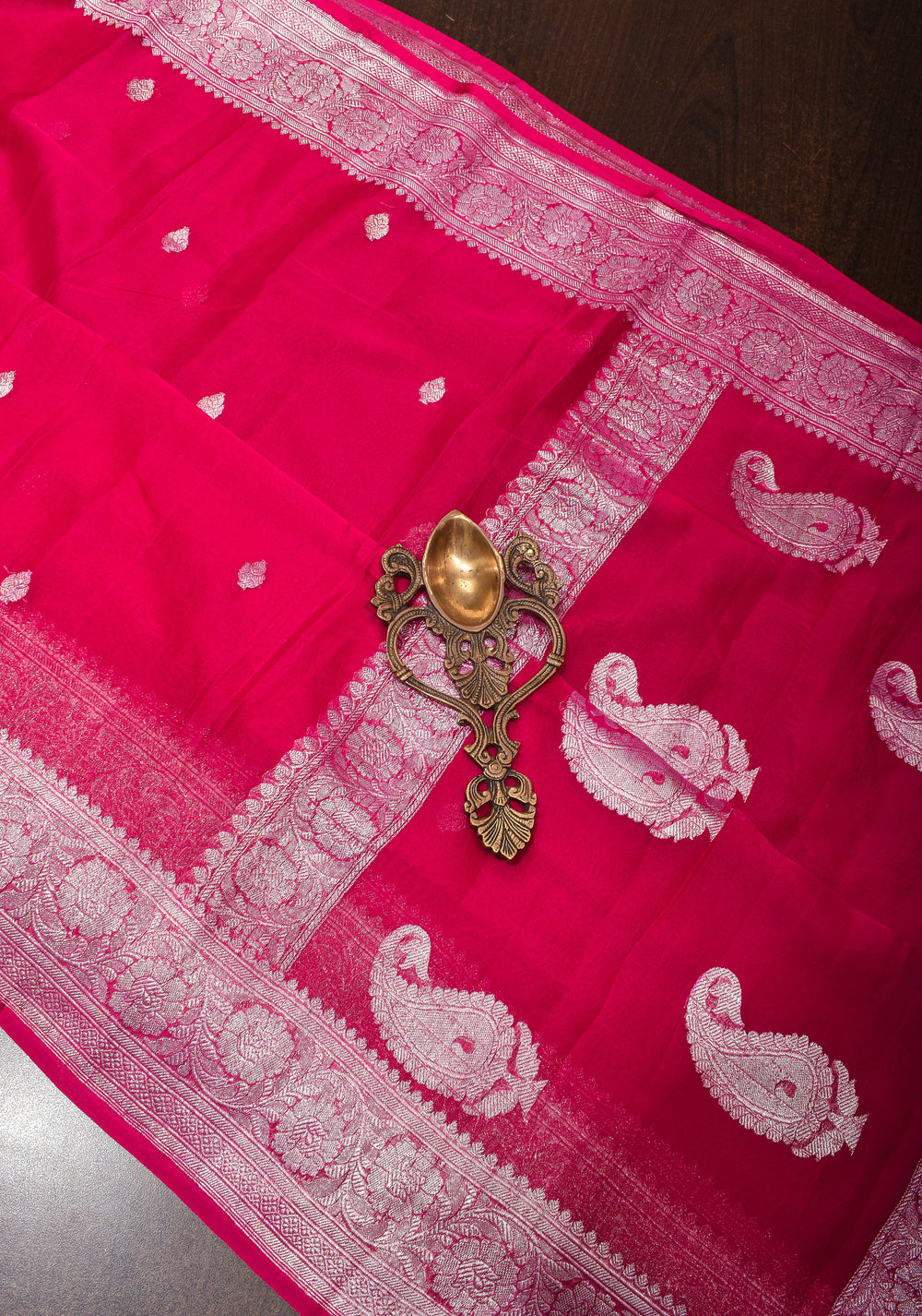 • Banarasi silk has different varieties like Katan, Organza, and Georgette Banarasi, each with a unique drape and texture.