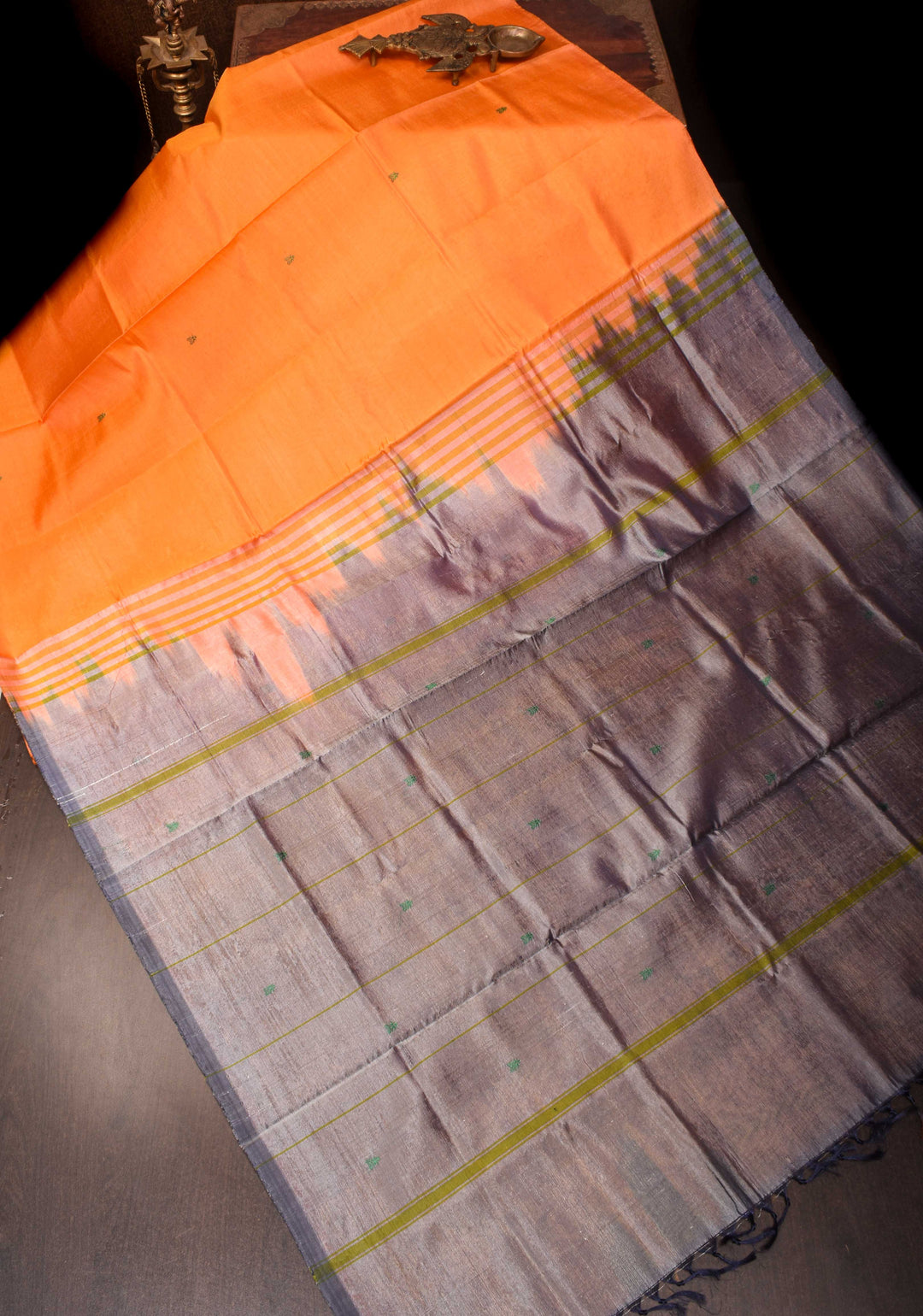• Also called Kosa silk, Tussar silk sarees are woven from wild silk cocoons, giving them a naturally rich texture and raw finish.