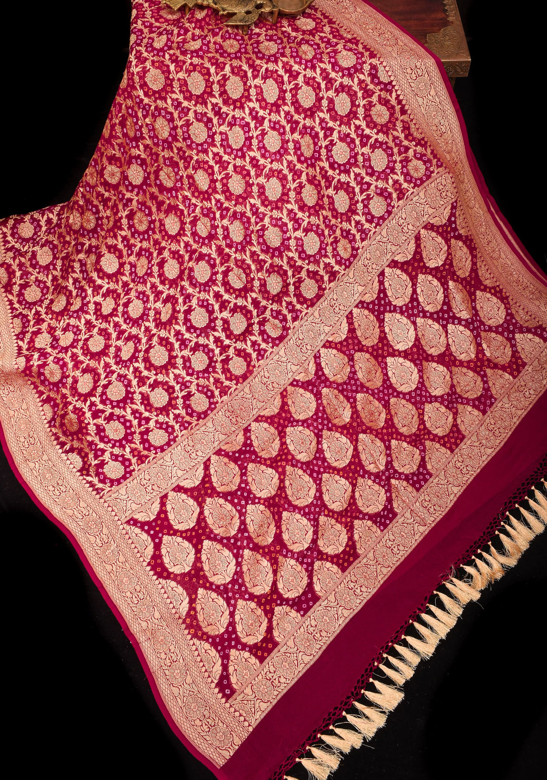 Banarasi silk has different varieties like Katan, Organza, and Georgette Banarasi, each with a unique drape and texture.