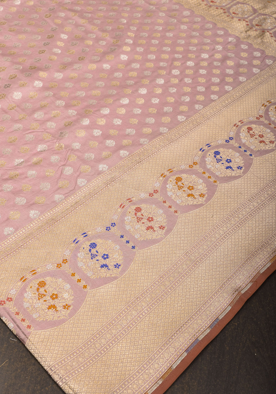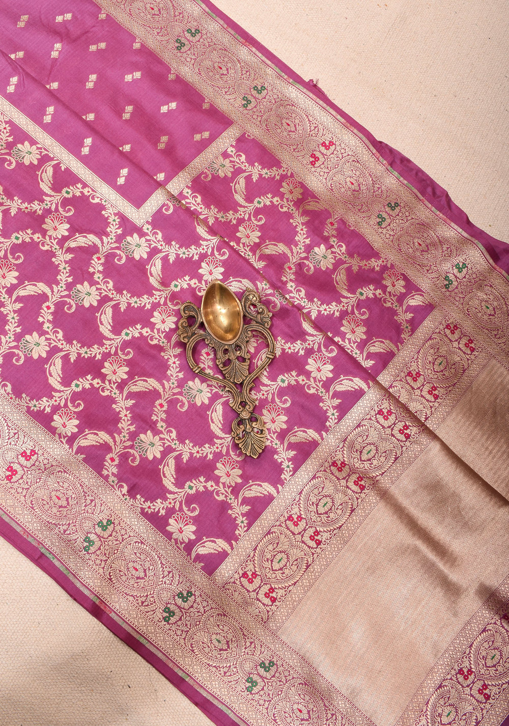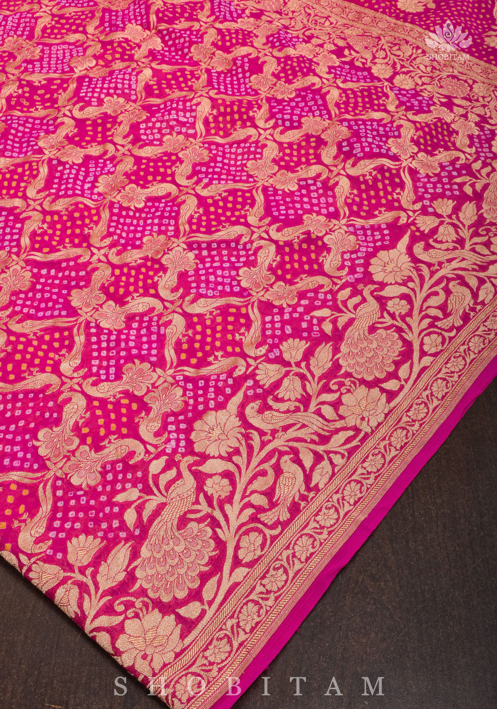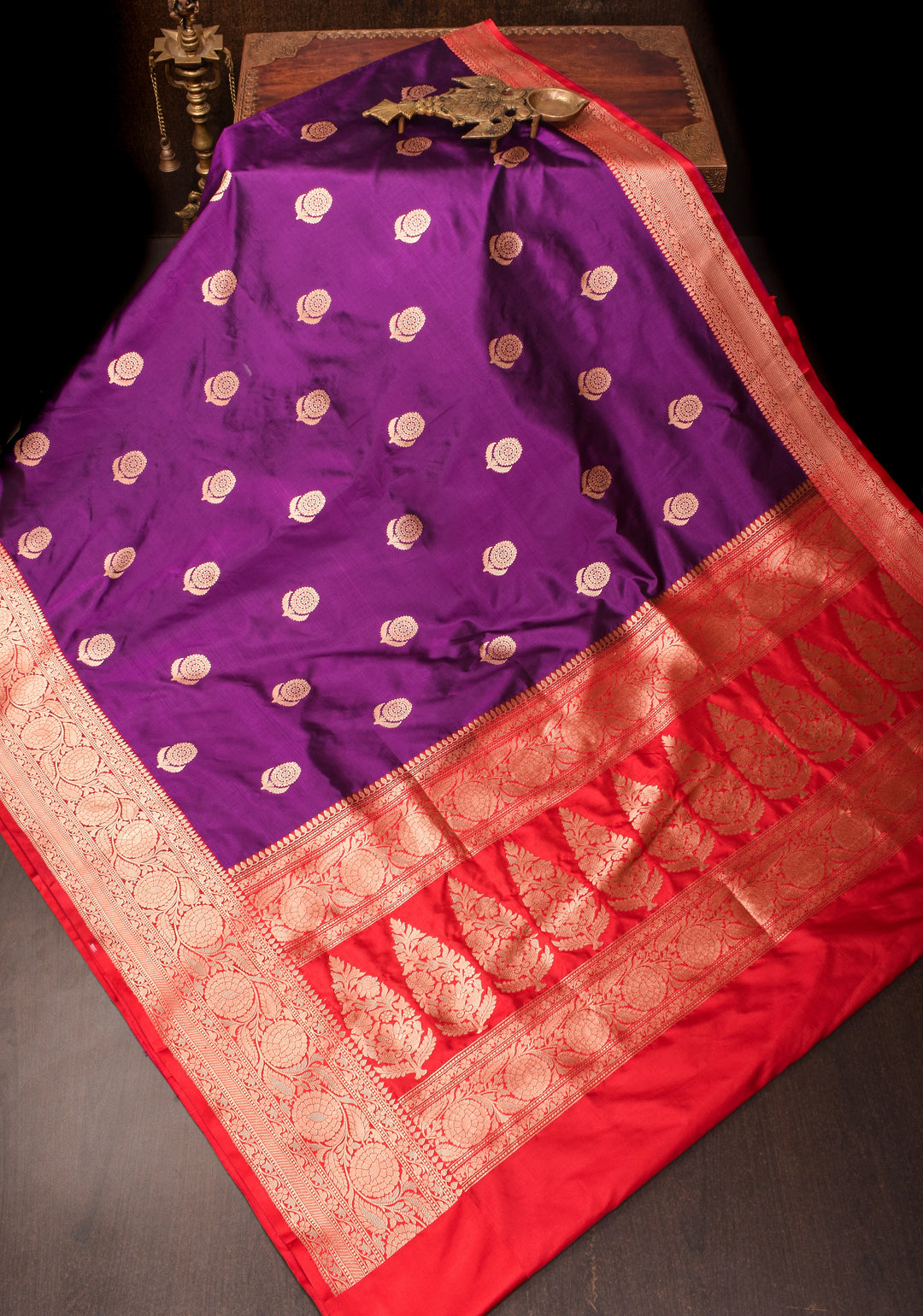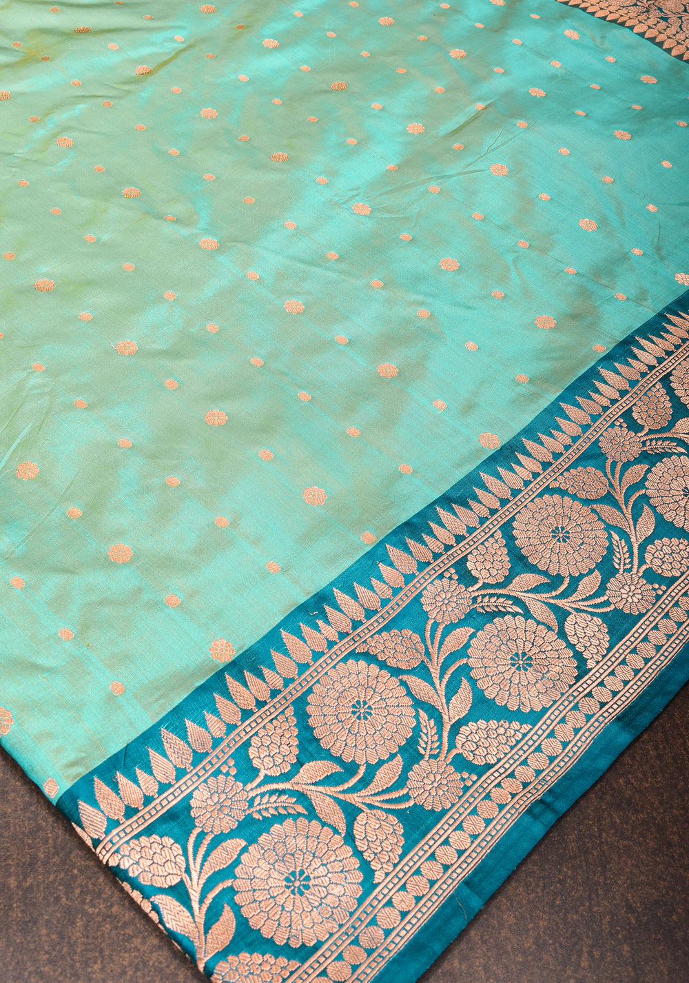 Woven in Varanasi (Banaras), Uttar Pradesh, these sarees are known for their opulent look and intricate Mughal-inspired motifs.