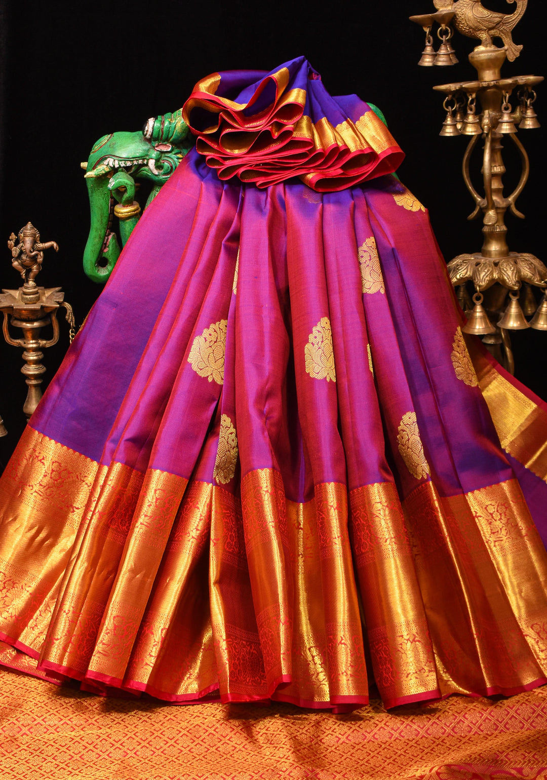 In ancient times, silk sarees were exclusively woven for royals, temple deities, and nobility, making them symbols of divine grace and social status.