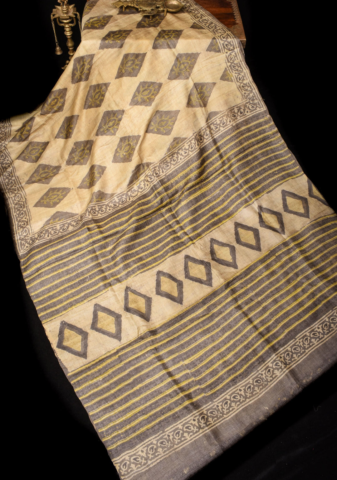 Hand-painted and block-printed Tussar sarees are quite popular, featuring tribal, nature-inspired, and abstract motifs.