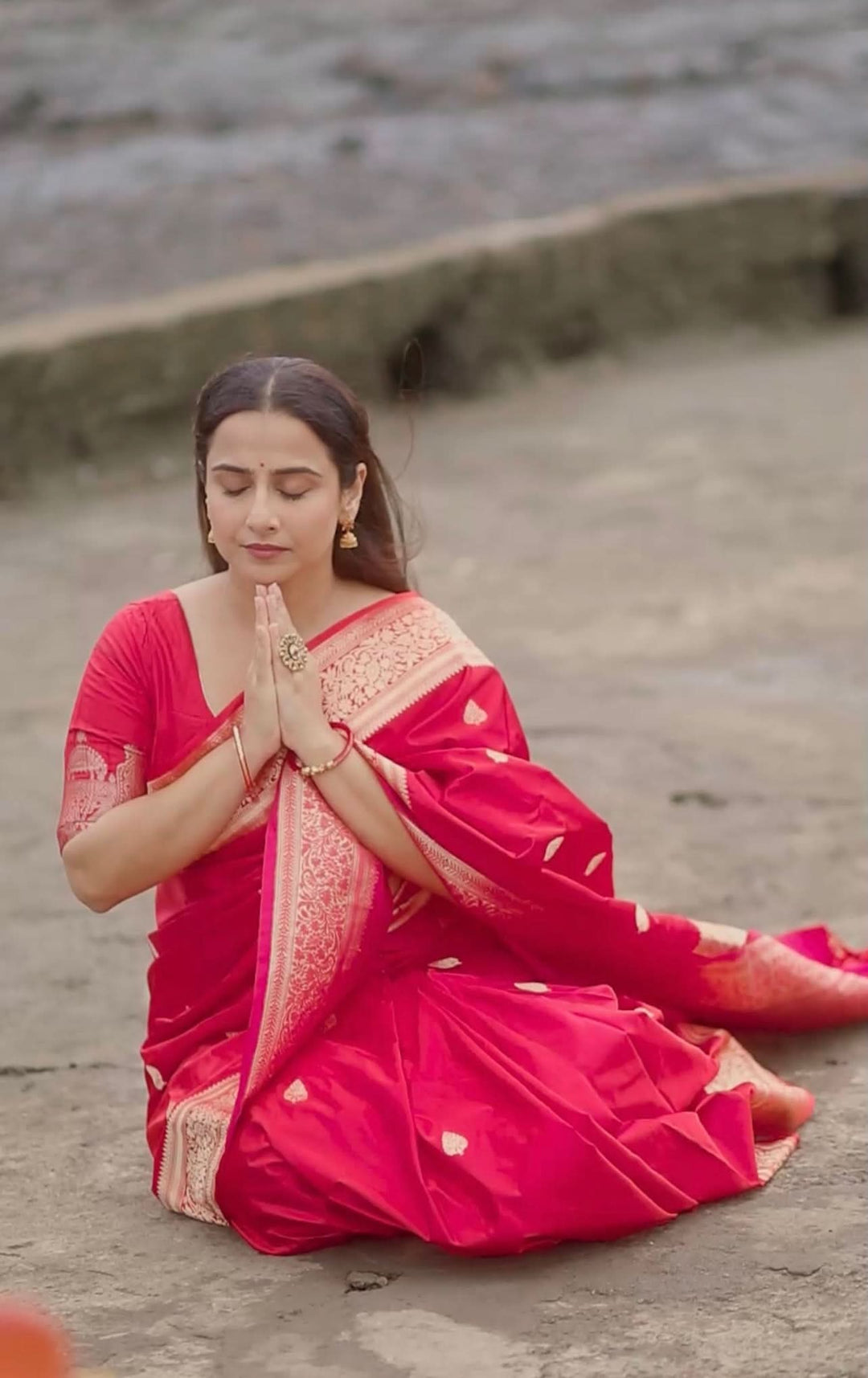 For evening pujas and celebrations, opt for a Chanderi silk saree or Banarasi silk saree with subtle embroidery and pair it with traditional gold jewelry.