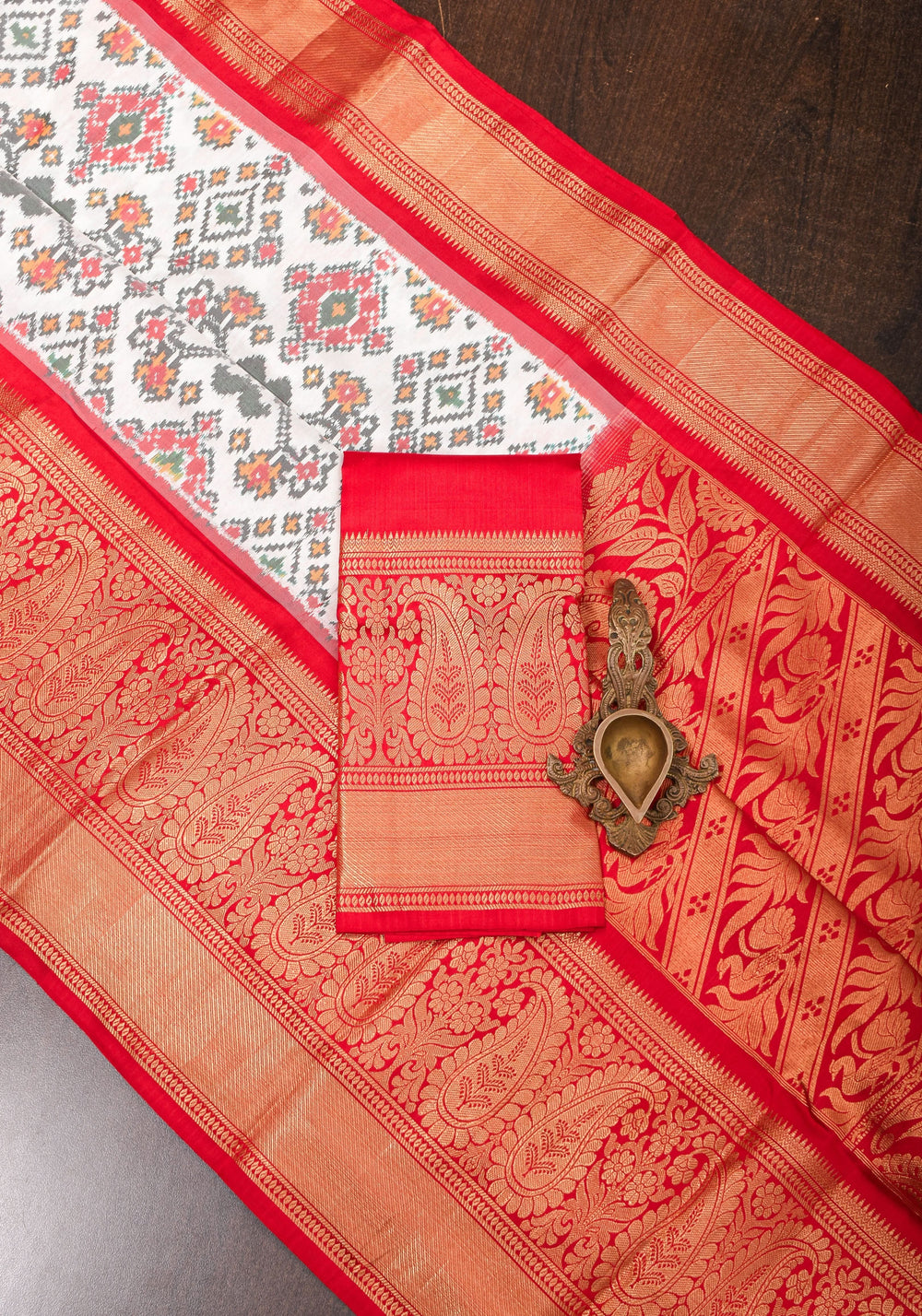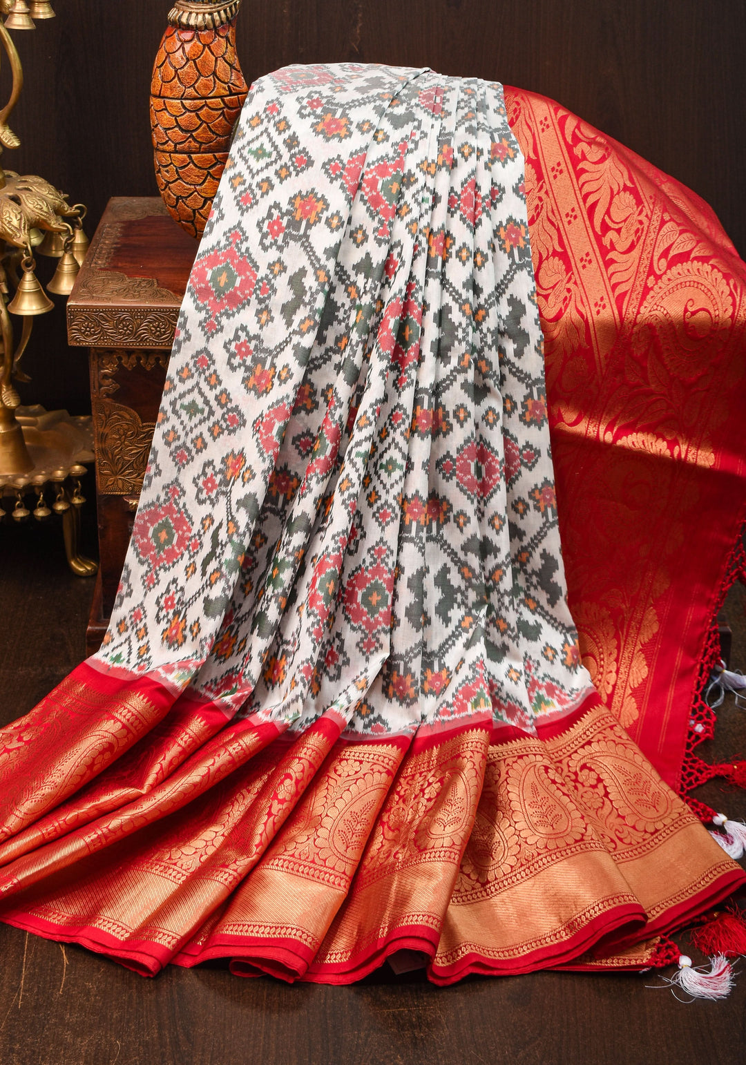 Patola silk sarees from Gujarat are double-ikat woven masterpieces, requiring months of meticulous craftsmanship.