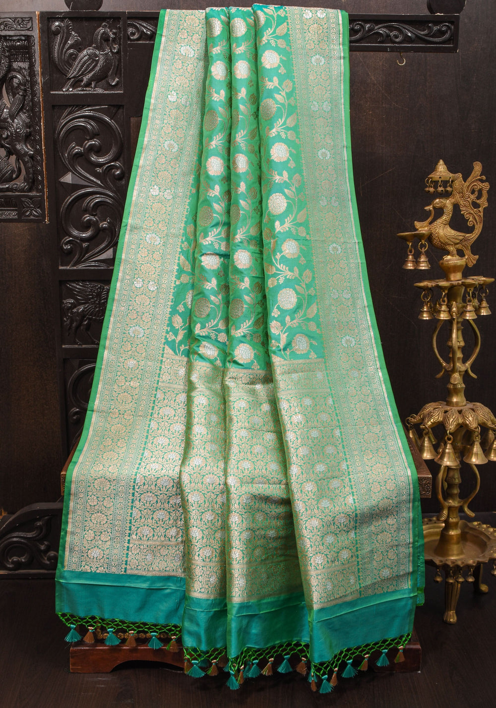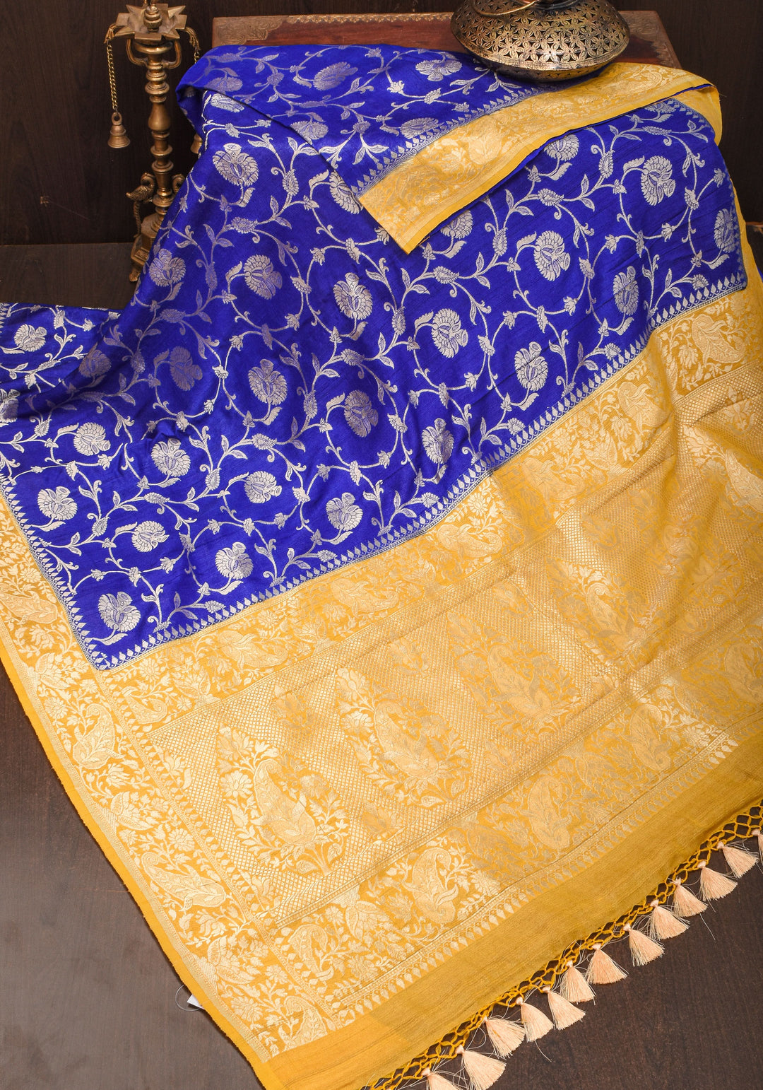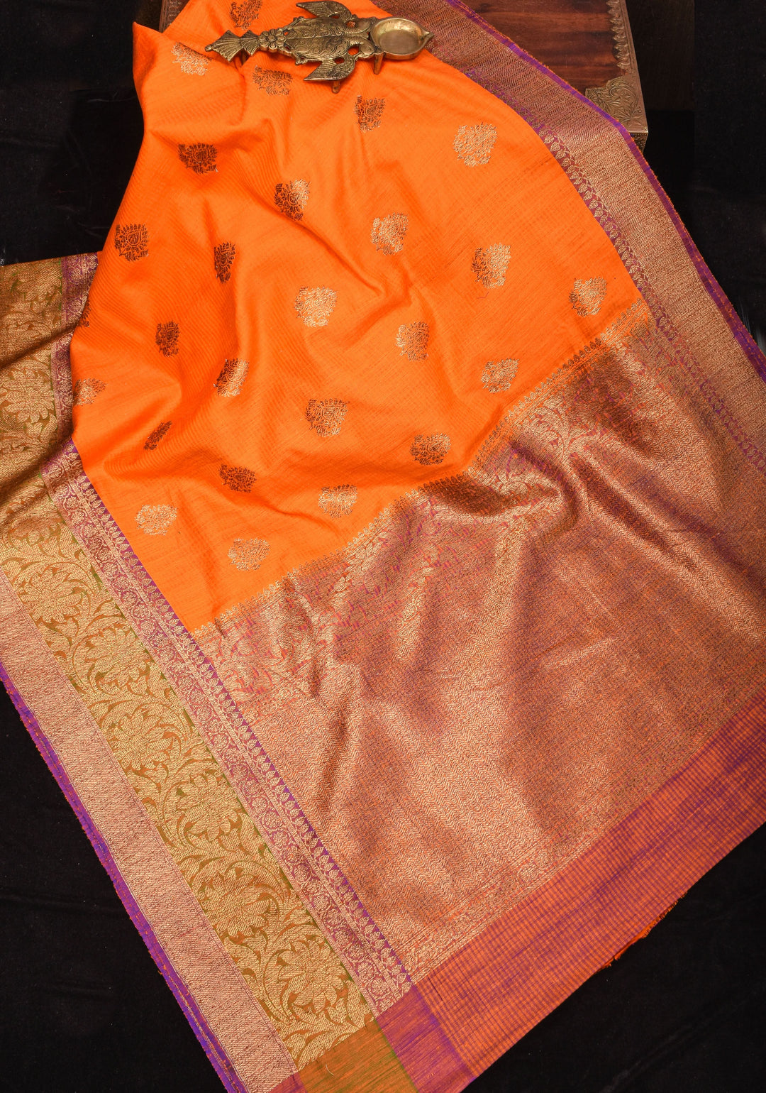 Woven in Varanasi (Banaras), Uttar Pradesh, these sarees are known for their opulent look and intricate Mughal-inspired motifs.
