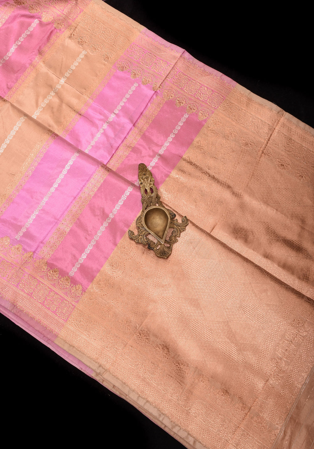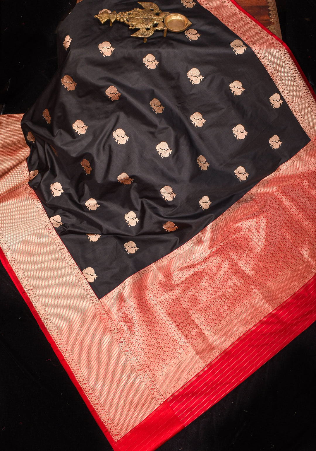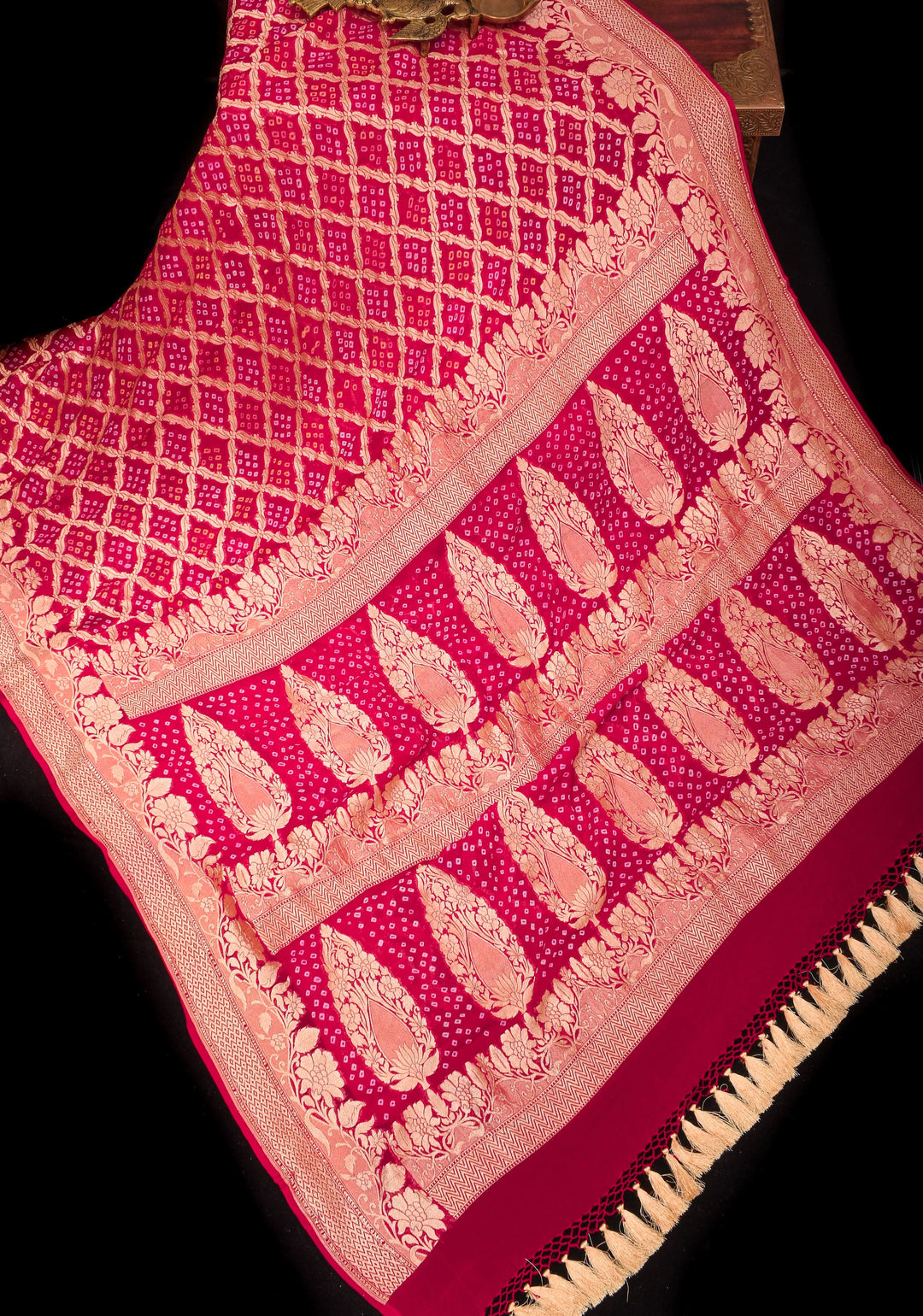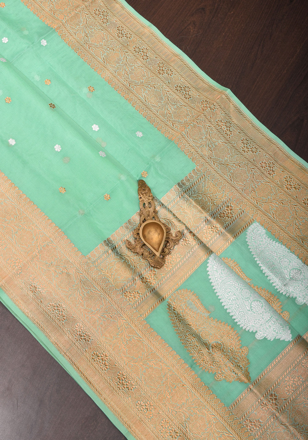 Woven in Varanasi (Banaras), Uttar Pradesh, these sarees are known for their opulent look and intricate Mughal-inspired motifs.