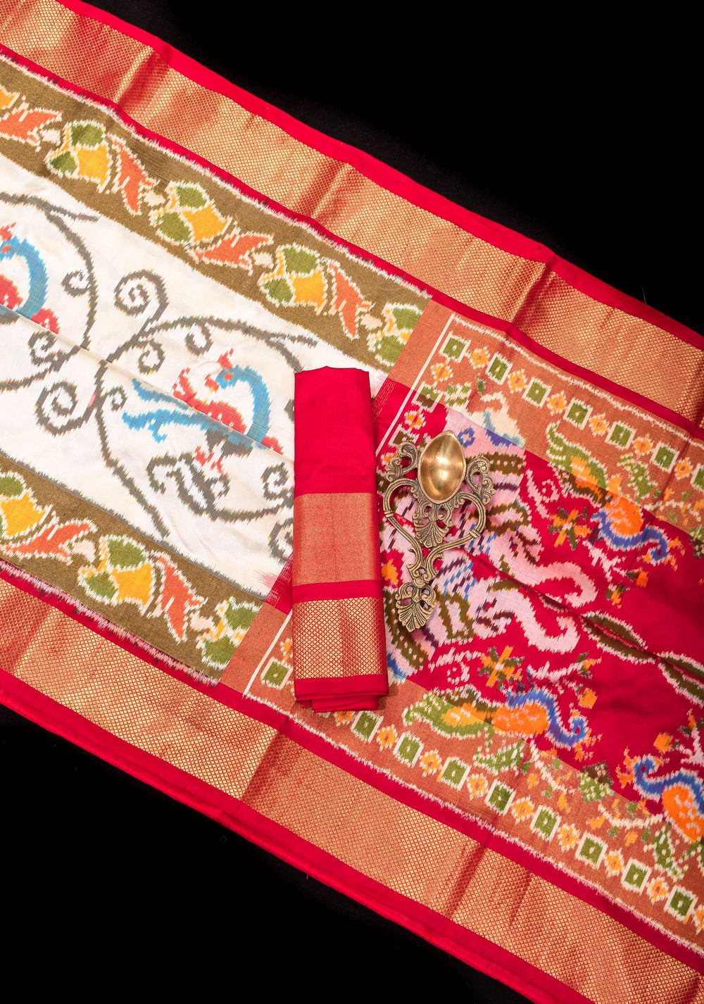 Patola silk sarees from Gujarat are double-ikat woven masterpieces, requiring months of meticulous craftsmanship.