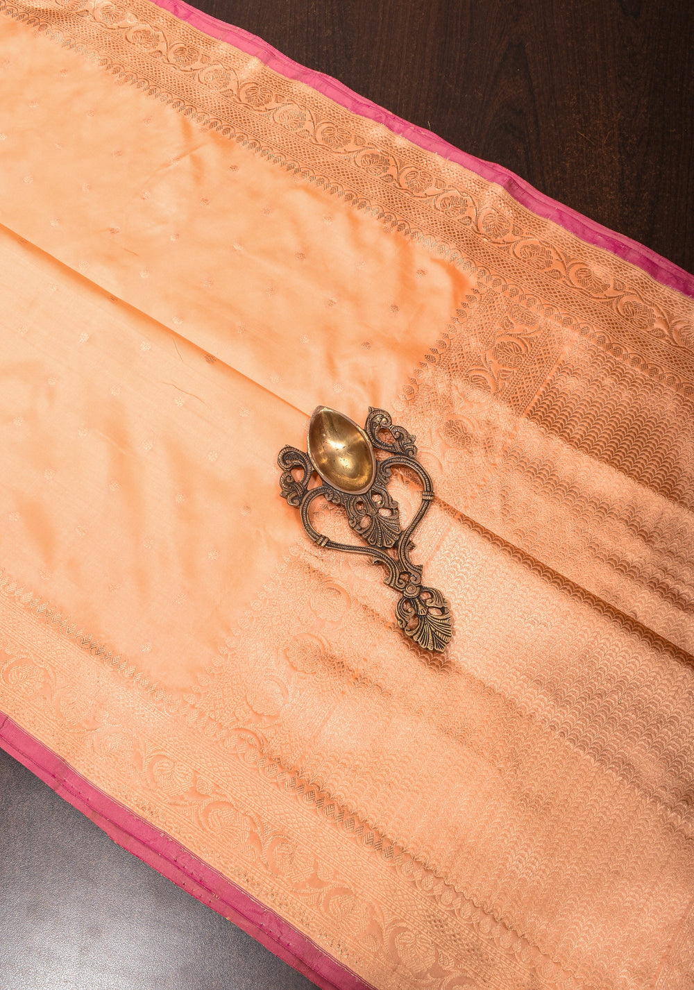 Avoid using a direct hot iron on zari or embroidered work, as excessive heat can dull the golden shine.