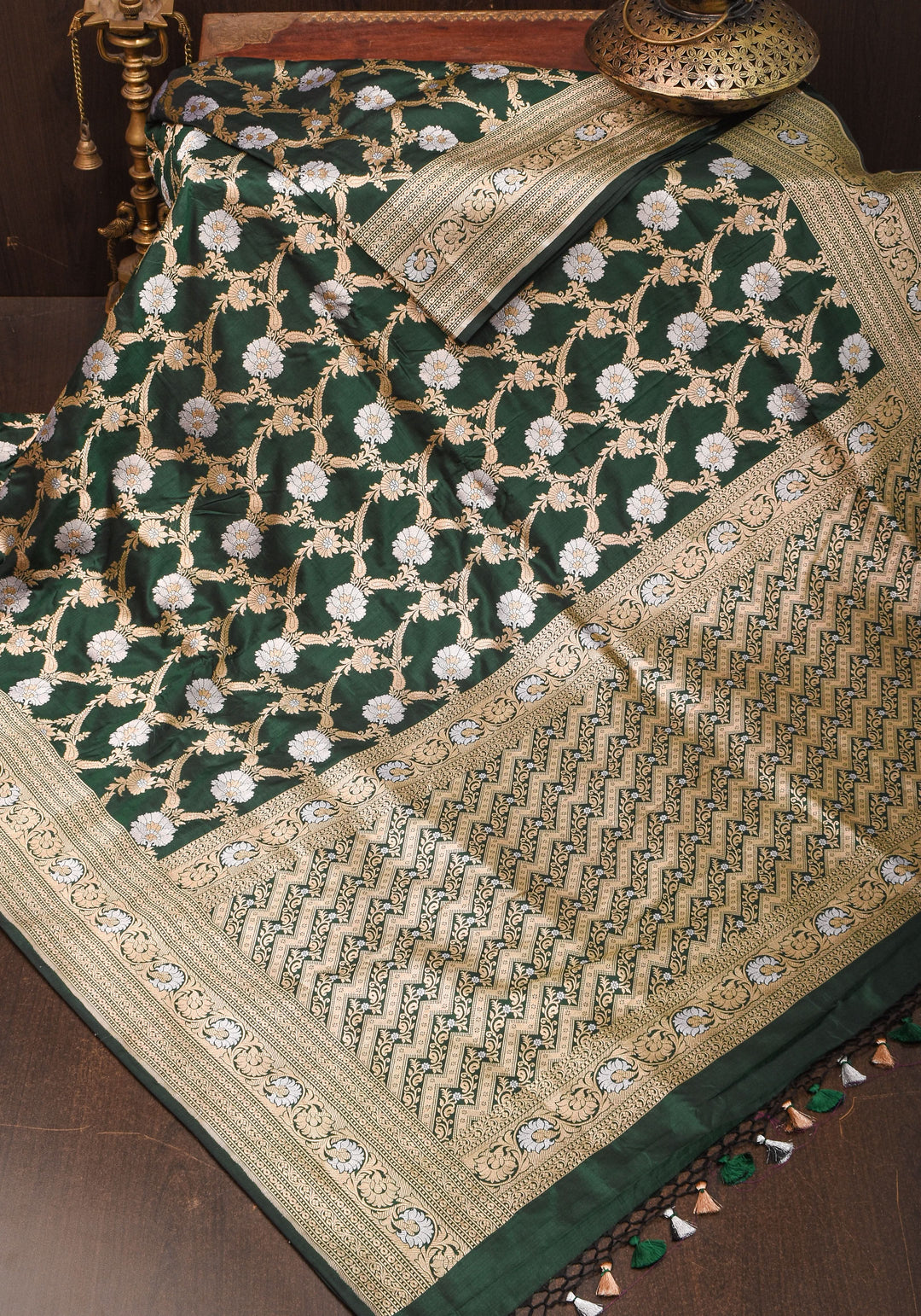 Featuring rich gold and silver brocade work, Banarasi silk sarees are often compared to heirloom jewelry—treasured for generations.