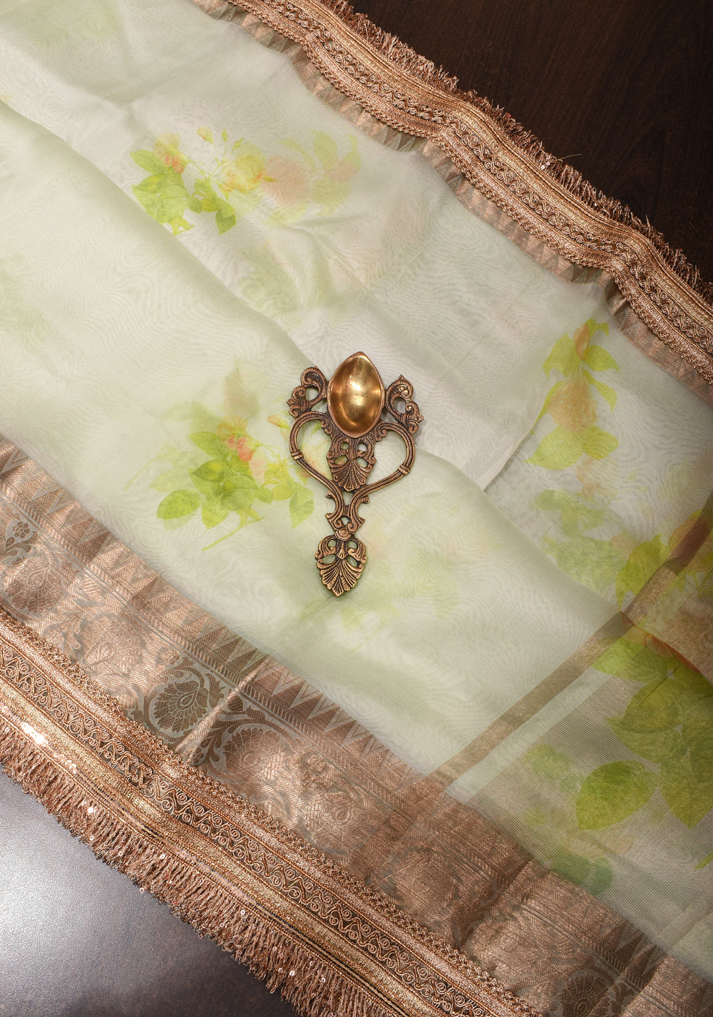 If creases do appear, use a steam iron at low heat or place a cotton cloth over the saree before ironing.