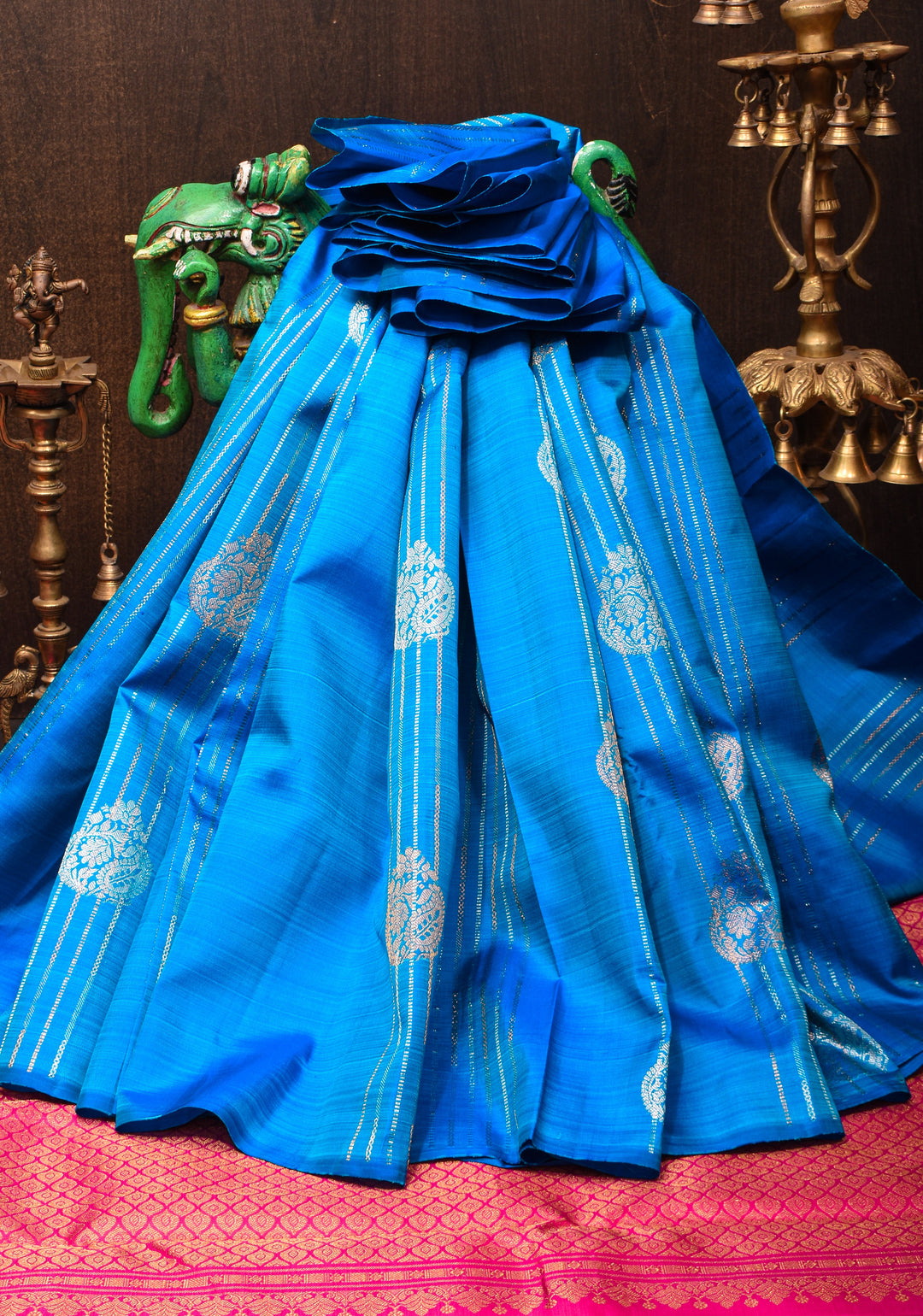 In ancient times, silk sarees were exclusively woven for royals, temple deities, and nobility, making them symbols of divine grace and social status.
