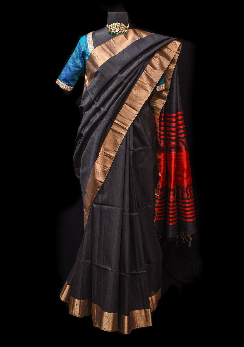 Tussar silk sarees – These have a natural golden hue and a slightly coarse texture, lending a rustic yet refined appeal.