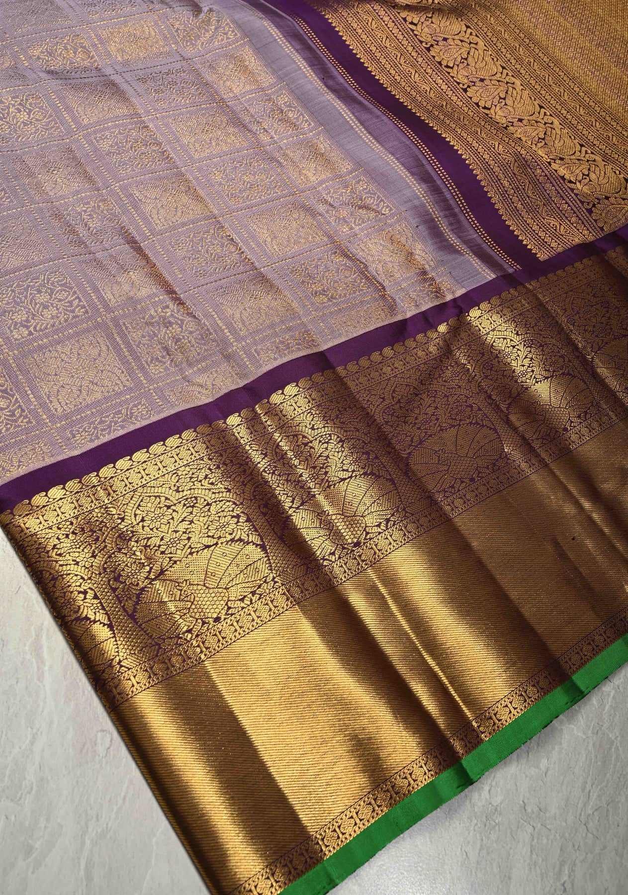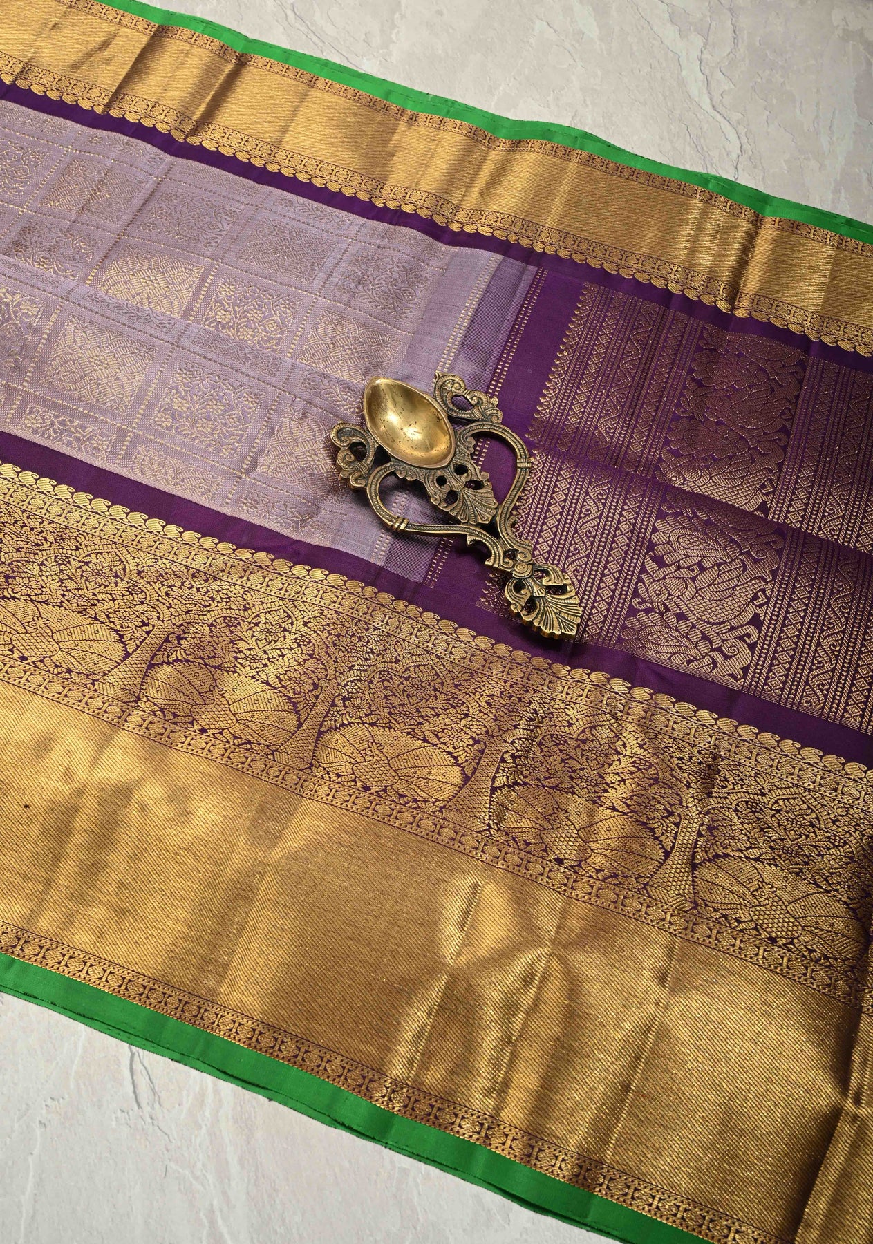 Dusty Amethyst Pure Gadwal Silk Saree with Patola Brocade and Contrast Wide Zari Border | SILK MARK CERTIFIED