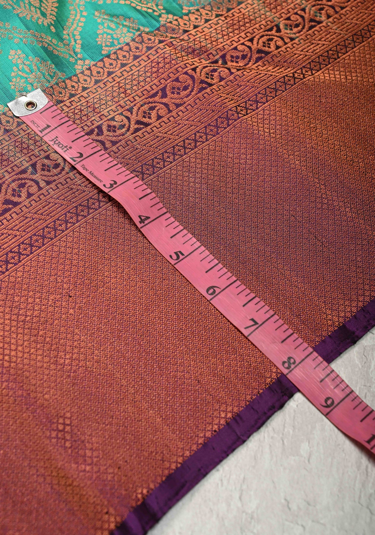 The Irish Green Brocade Kanjivaram Soft Silk Saree with Contrast Zari Border is a timeless expression of South Indian elegance and craftsmanship. Woven from soft silk, this saree features an exquisite brocade weave that adds rich texture and depth to the vibrant Irish green body. The intricate patterns are gracefully complemented by a striking contrast zari border, which enhances the overall appeal with its golden shimmer and traditional motifs. Lightweight yet luxurious, this saree drapes beautifully, making it ideal for weddings, festive occasions, and cultural celebrations. A perfect blend of heritage and sophistication, it is a statement piece for the modern woman who values tradition with a touch of contemporary flair.